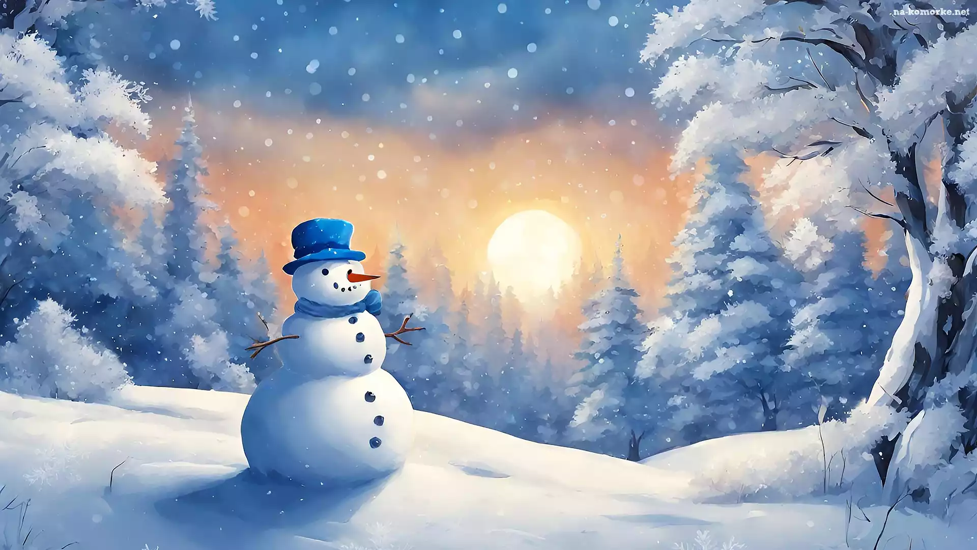Bałwan, Kapelusz, Zima, Niebieski, Drzewa na Komórkę