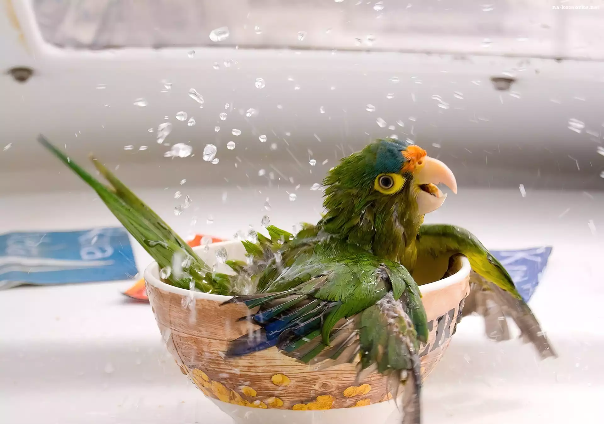 Papuga, Kąpiel, Salaterka na Komórkę
