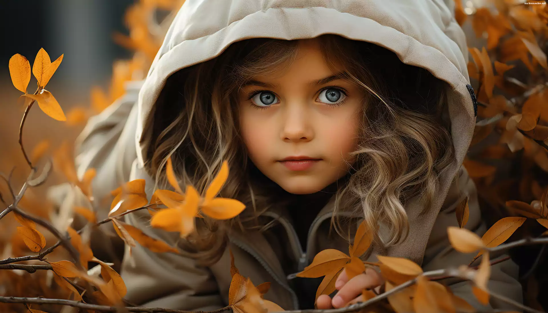 Kaptur, Kręcone, Liście, Długie, Twarz, Dziewczynka, Dziecko, Włosy, Żółte na Komórkę
