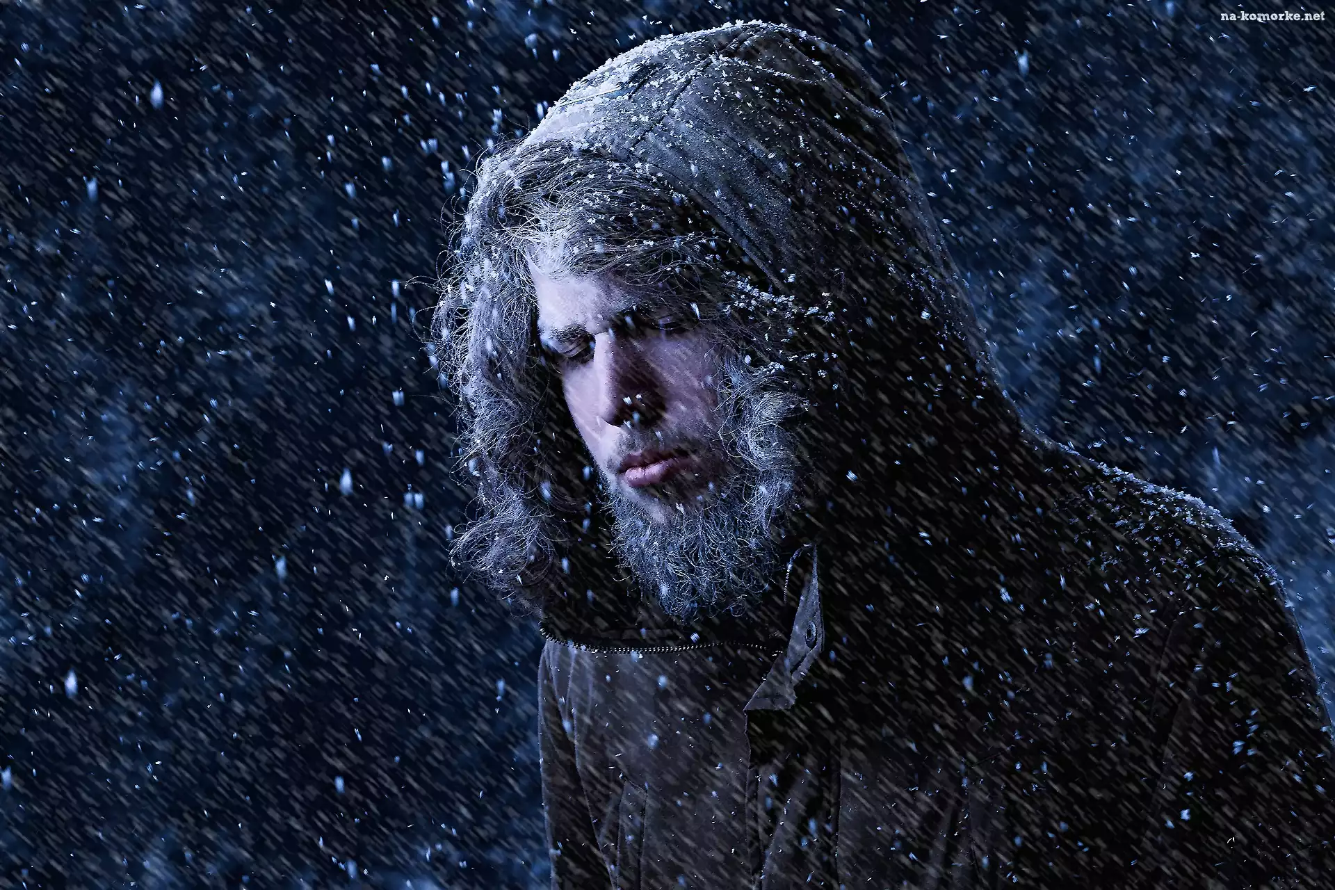 Kaptur, Zima, Śnieg, Mężczyzna, Broda na Komórkę