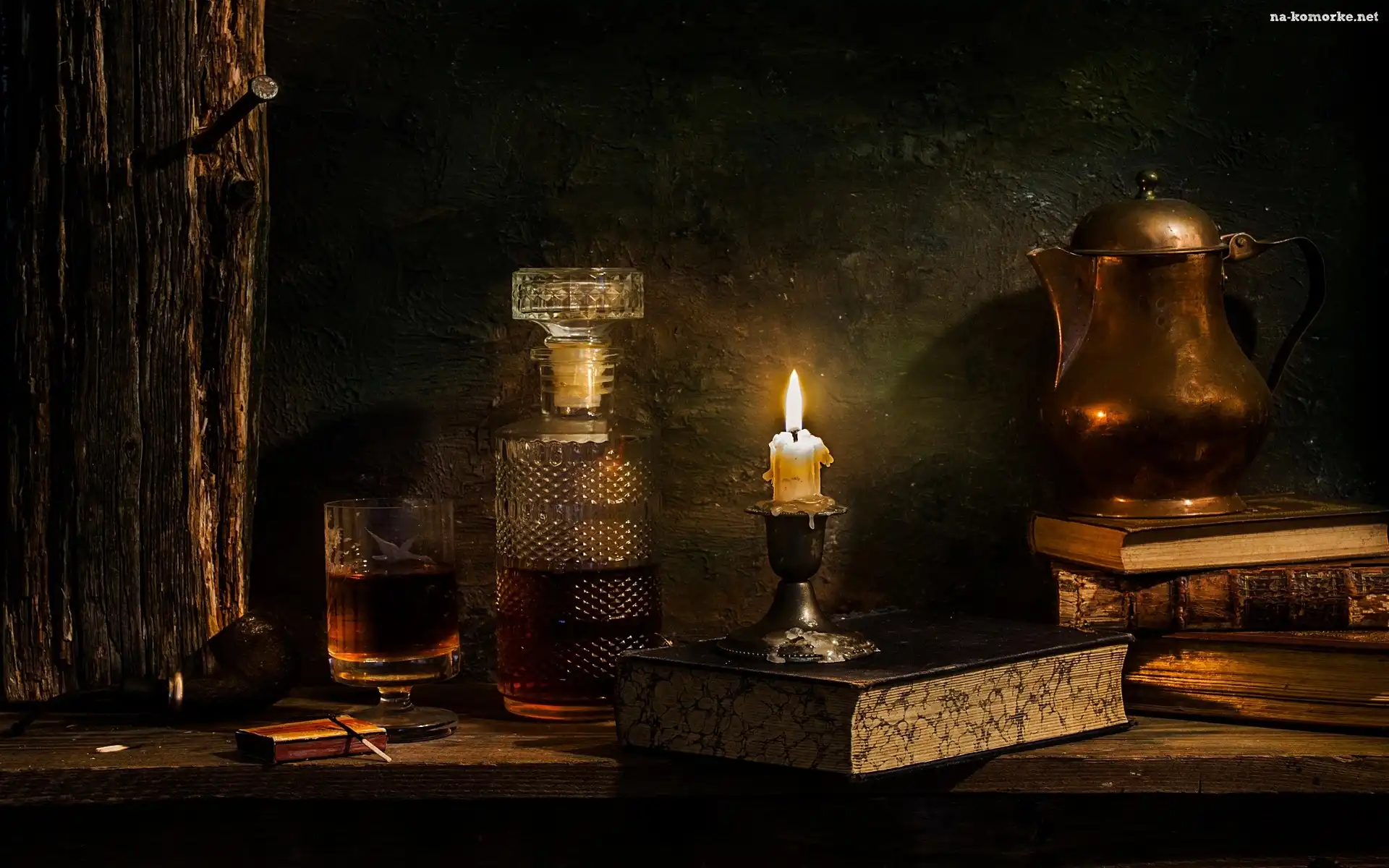 Karafka, Świeca, Kompozycja, Koniak, Książki, Alkohol na Komórkę