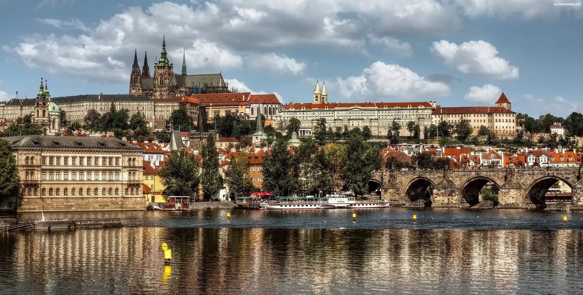 Most Karola, Czechy, Praga, Wełtawa, Zamek Hradczany na Komórkę