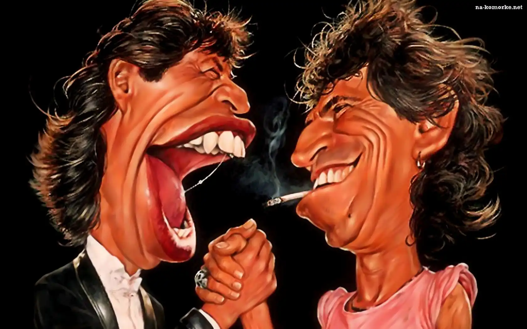 Karykatury, Keith, Richards, Mick, Jagger na Komórkę