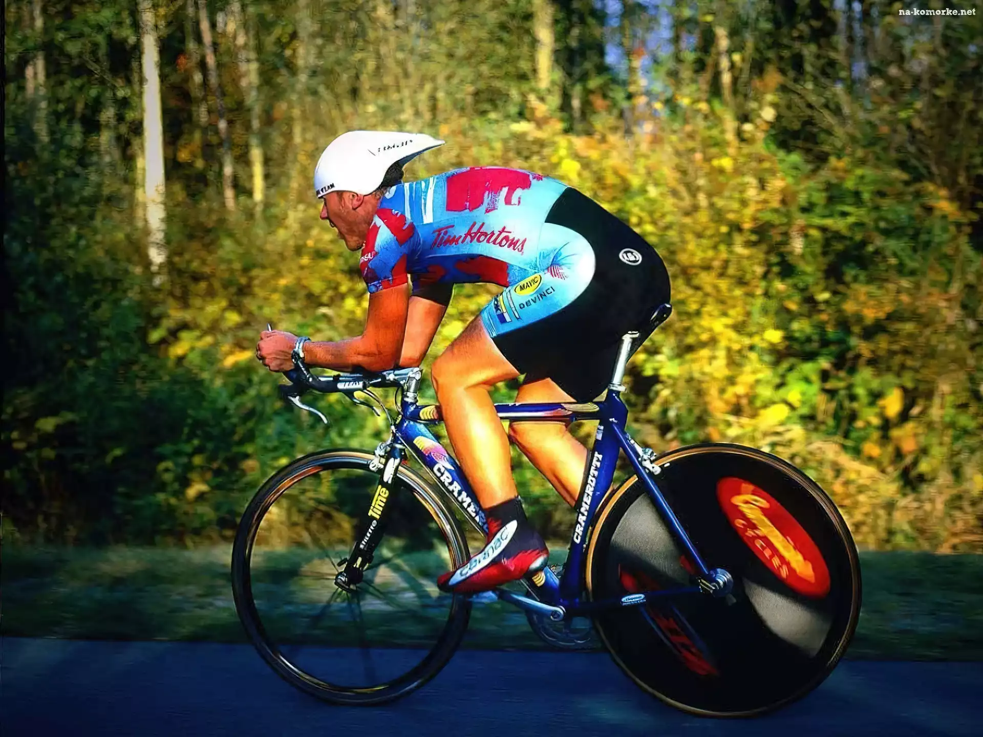 Rower, kask, kolarz na Komórkę
