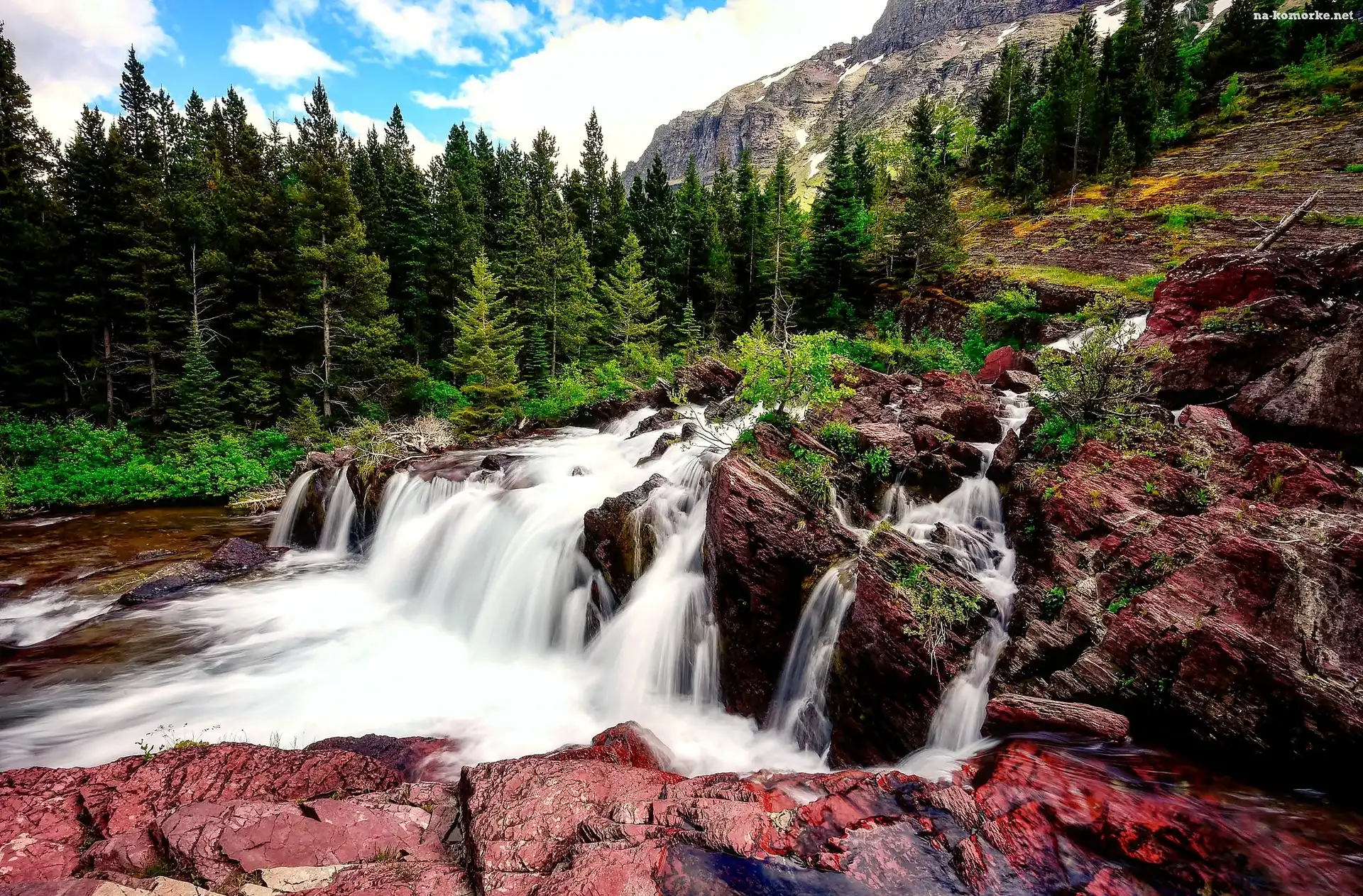 Kaskada, Góry, Las, Skały, Wodospad na Komórkę