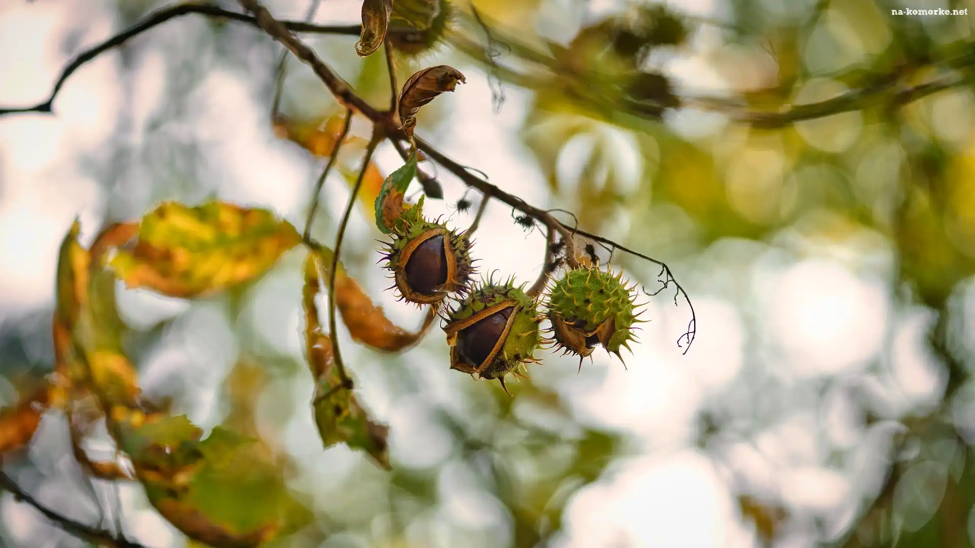 Kasztanowiec, Kasztany, Liście, Gałązka na Komórkę