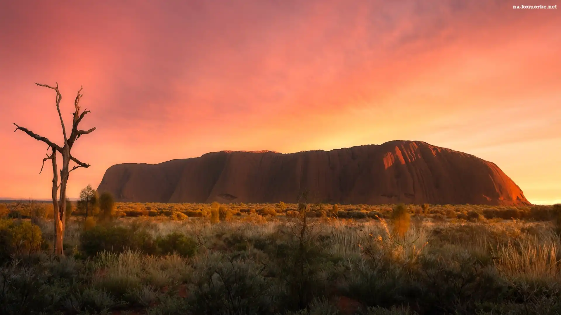 Australia, Park Narodowy Uluru Kata Tjuta, Góra, Trawa, Wschód słońca, Skała, Ayers Rock, Uluru na Komórkę |