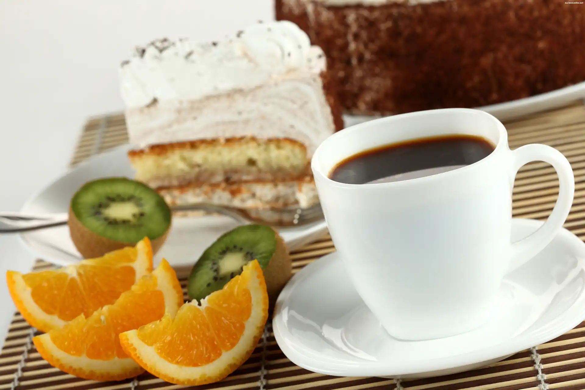 Kawa, Kiwi, Ciasto, Pomarańcza na Komórkę