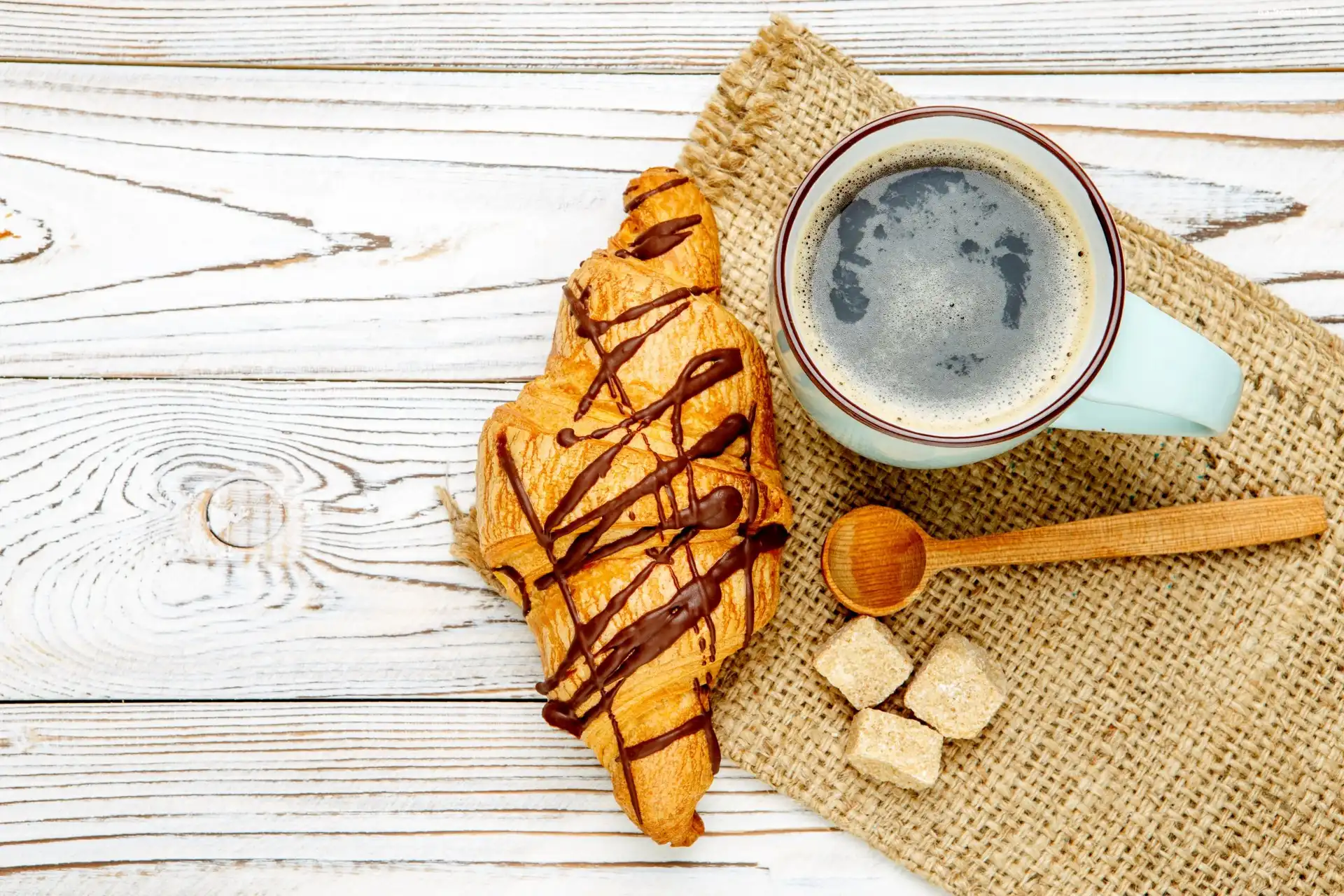 Kawa, Łyżeczka, Croissant, Drewniana na Komórkę
