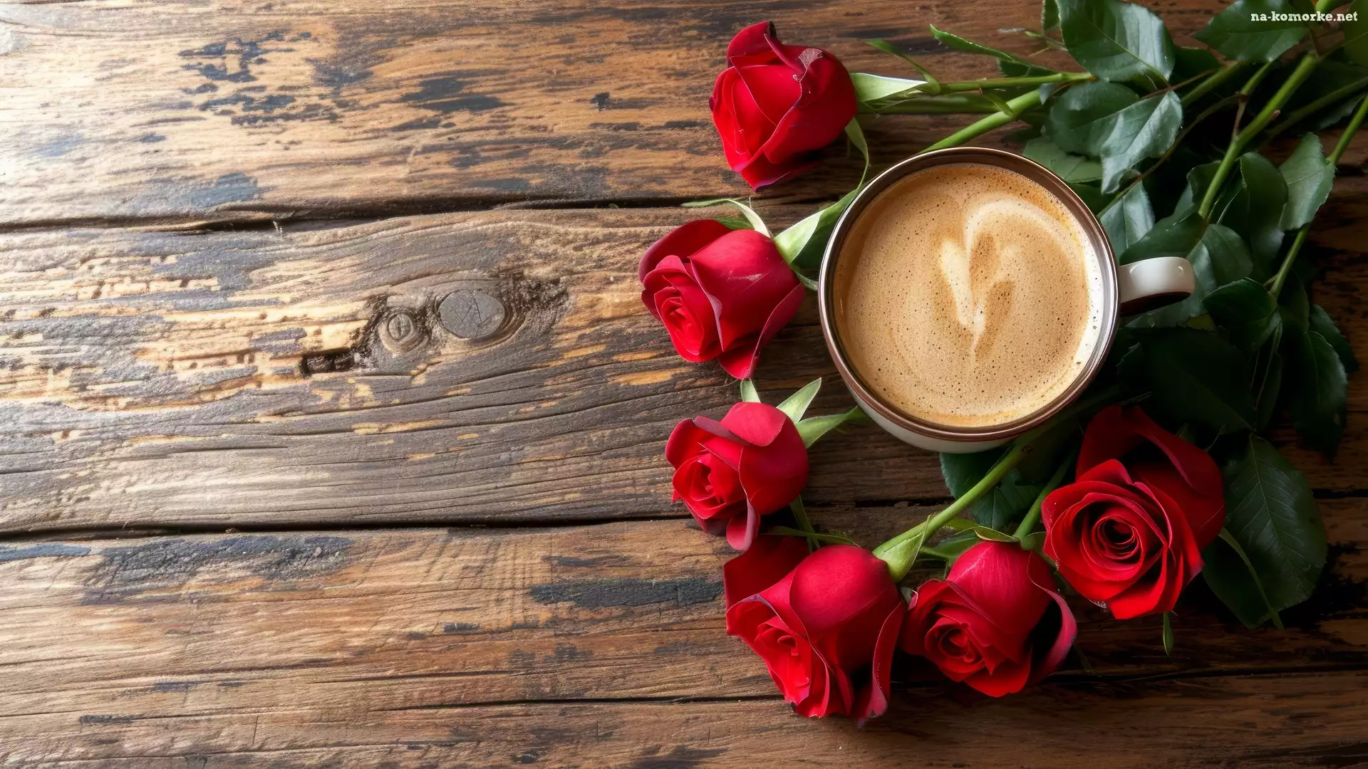 Kwiaty, Kawa, Drewno, Róże, Deski na Komórkę