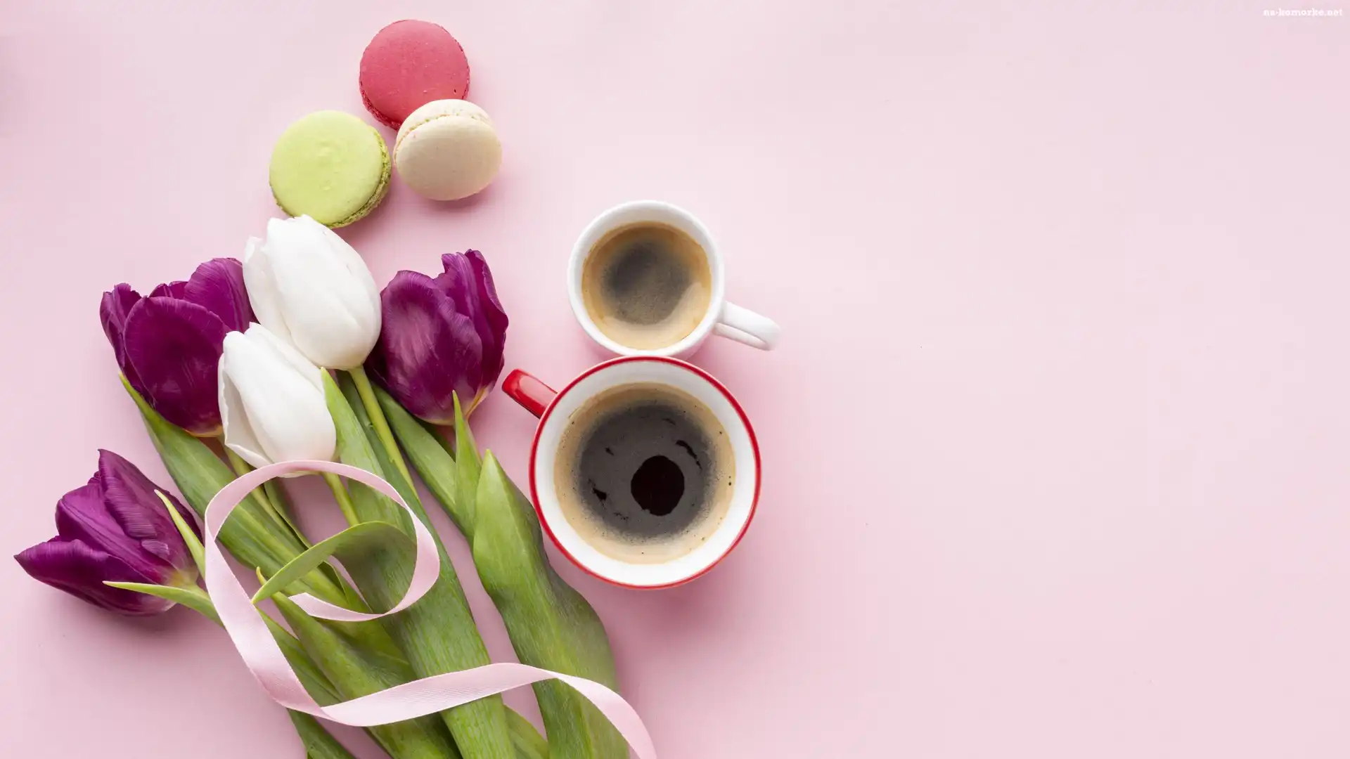 Kawa, Tulipany, Kwiaty, Makaroniki, Kubki, Ciasteczka na Komórkę