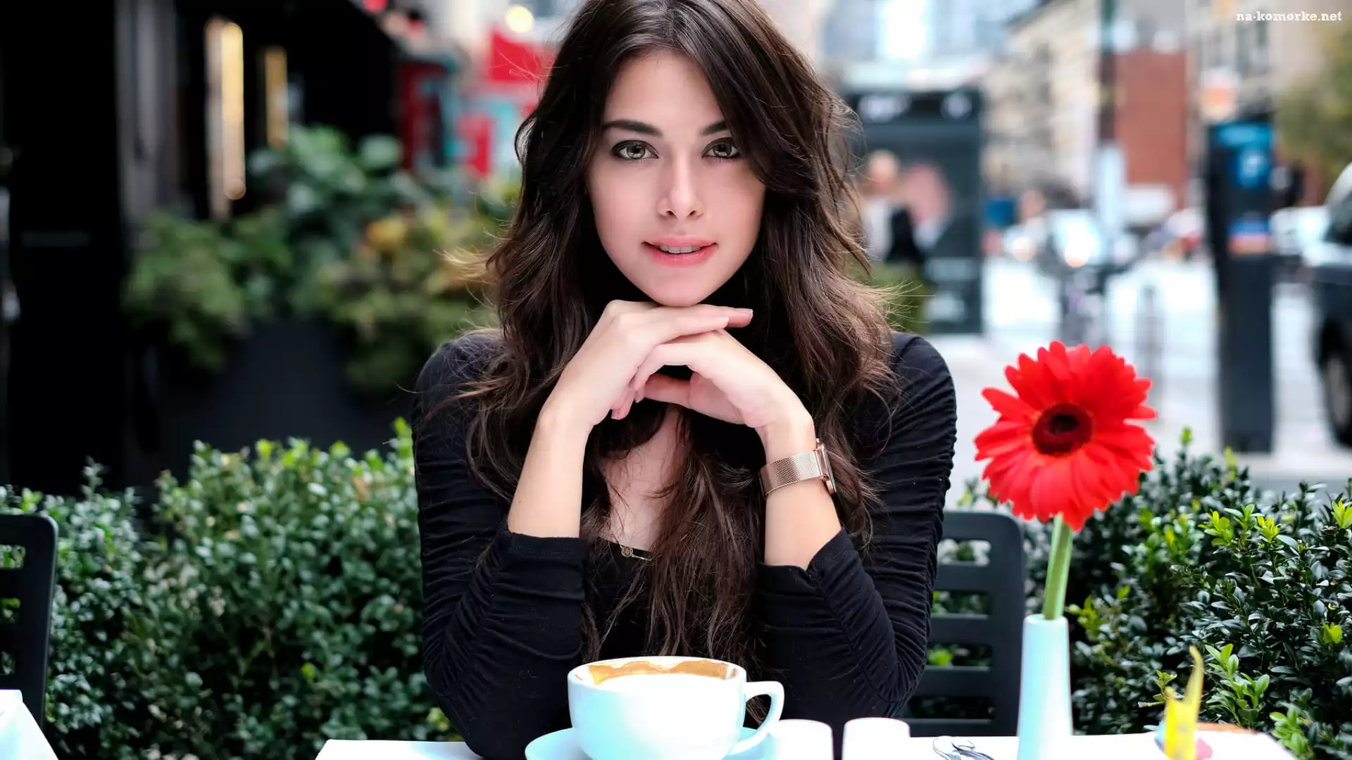 Gerbera, Dziewczyna, Kwiaty, Kawiarnia, Kawy, Filiżanka na Komórkę
