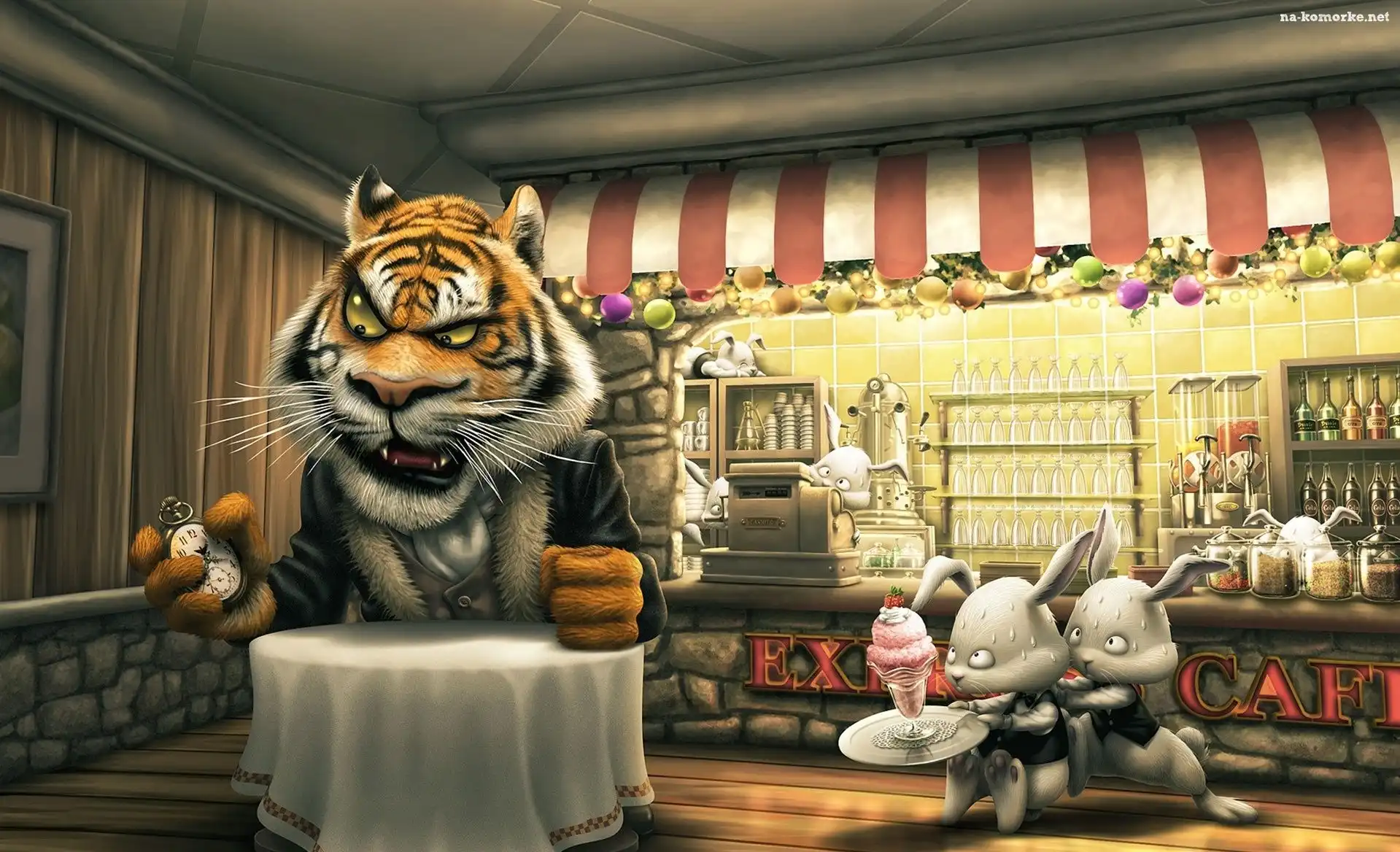 Kawiarnia, Króliczki, Zły, Tygrys na Komórkę