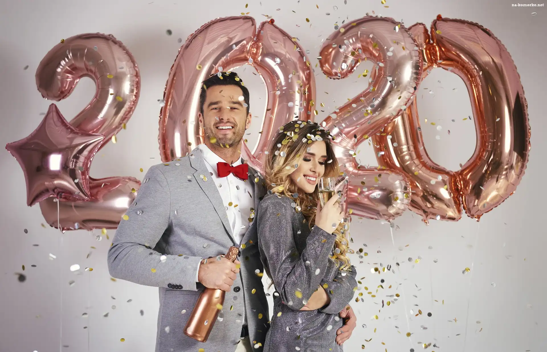 Noworoczne, Kieliszek, Konfetti, Mężczyzna, Kobieta, Baloniki, Szampan na Komórkę