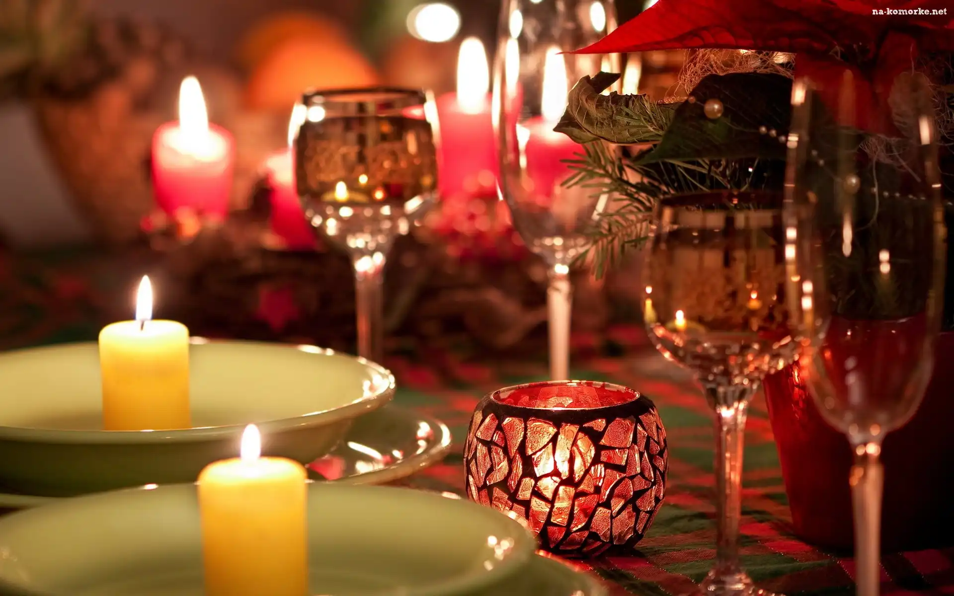 Kieliszki, Świąteczna, Dekoracja, Nastrój, Świece, Stół na Komórkę