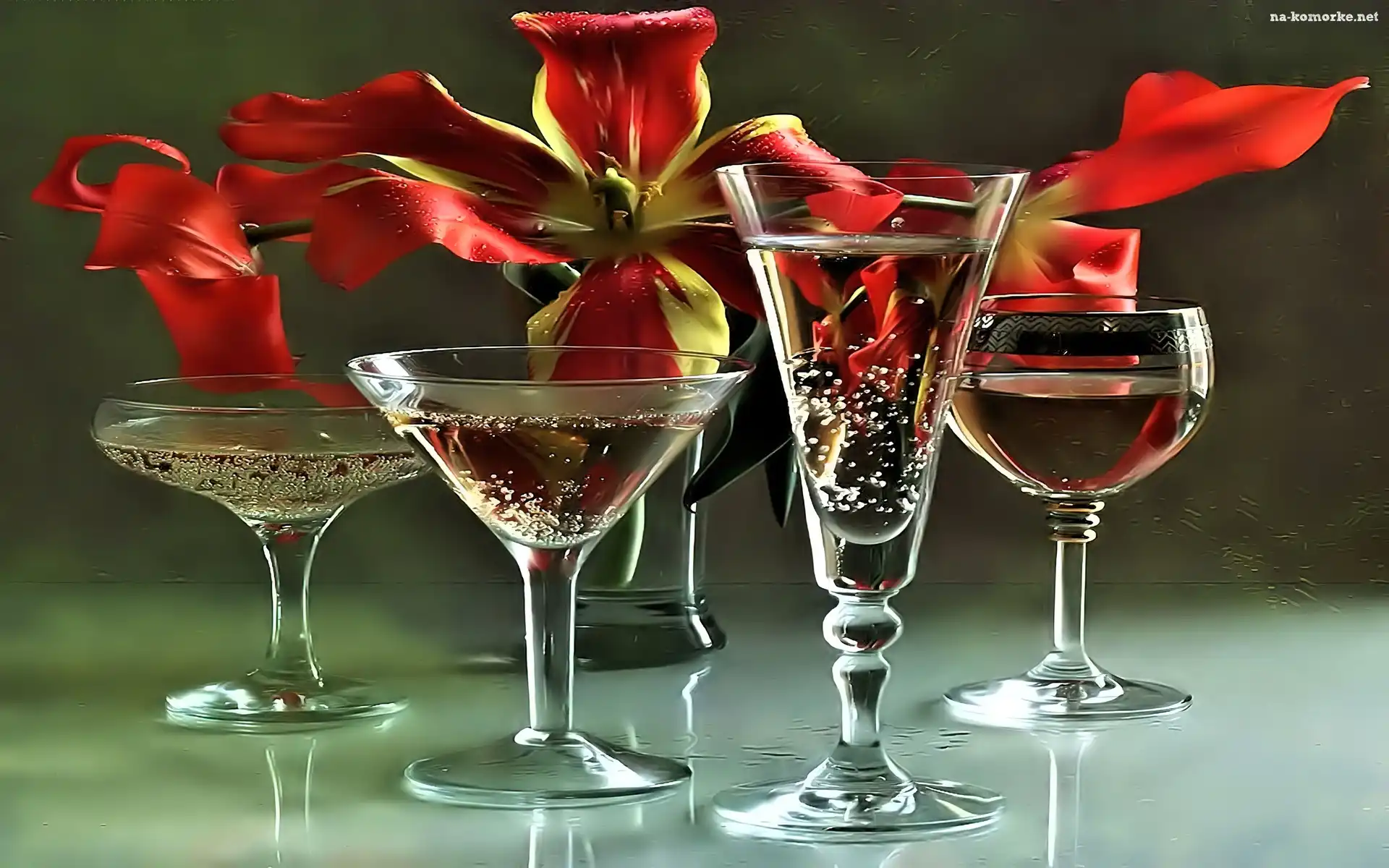 Kieliszki, Kwiat, Szampan, Czerwony na Komórkę