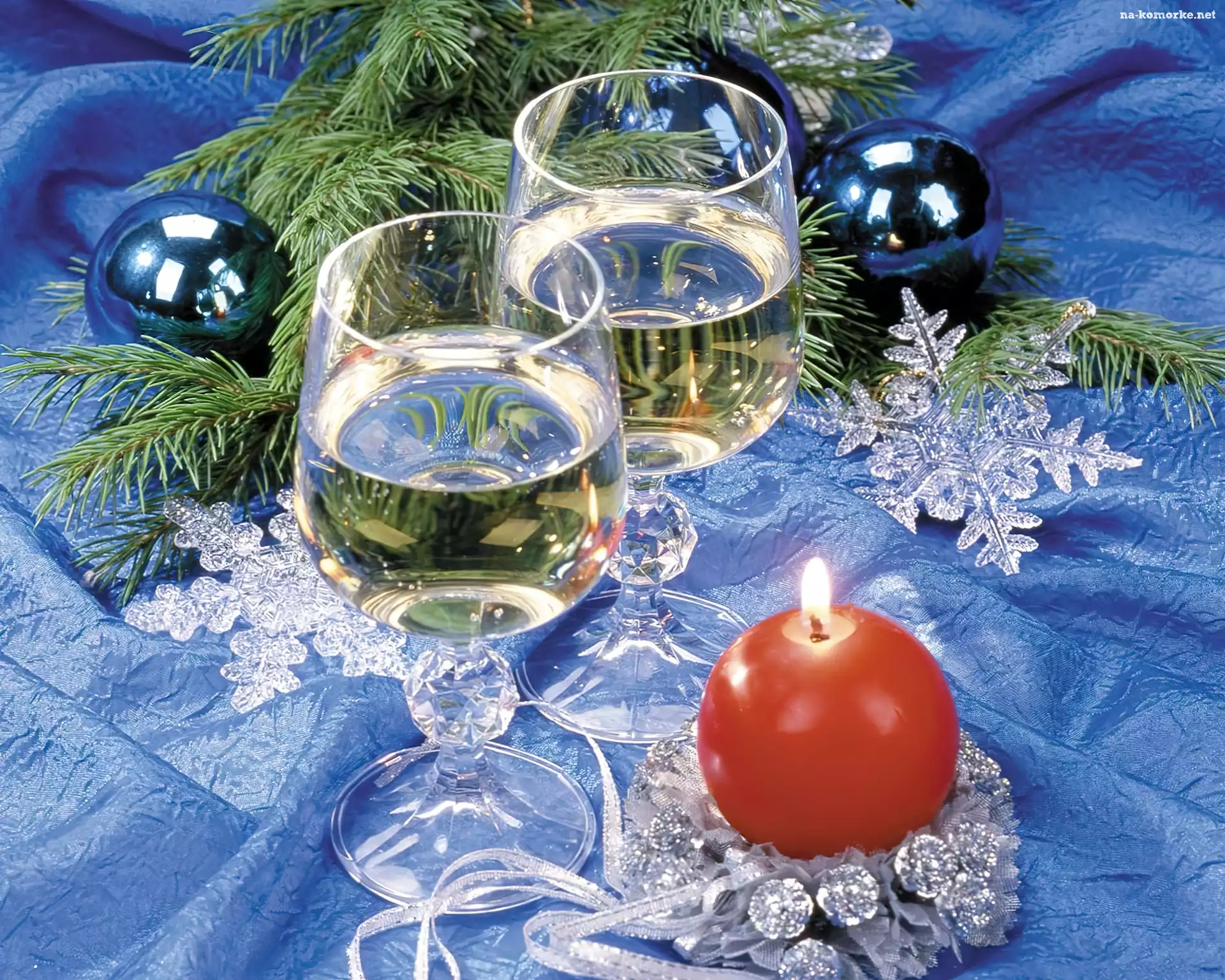 Kompozycja, Kieliszki, Wino, Świeczki, Bombki na Komórkę