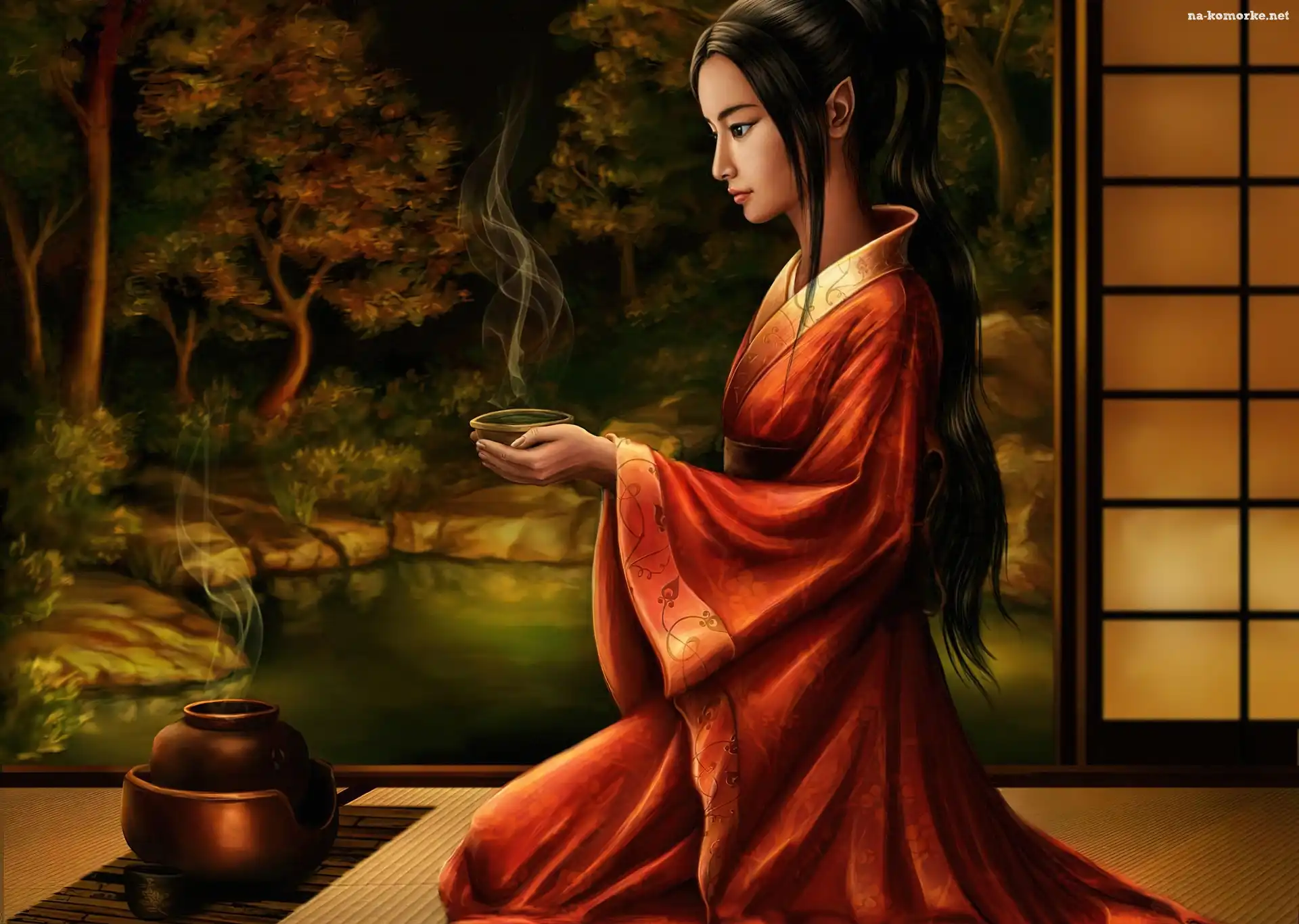 Kobieta, Kimono, Czarka na Komórkę