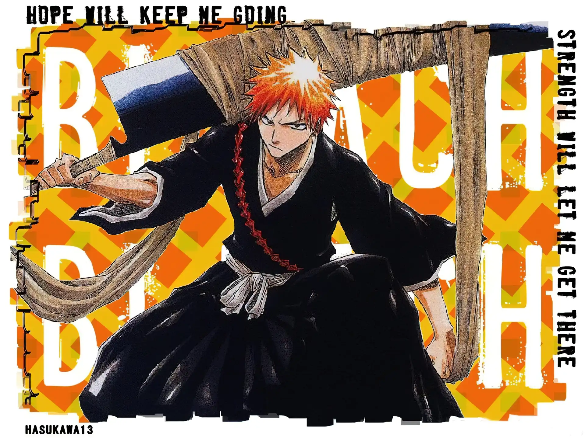 Bleach, miecz, napisy, osoba, kimono na Komórkę