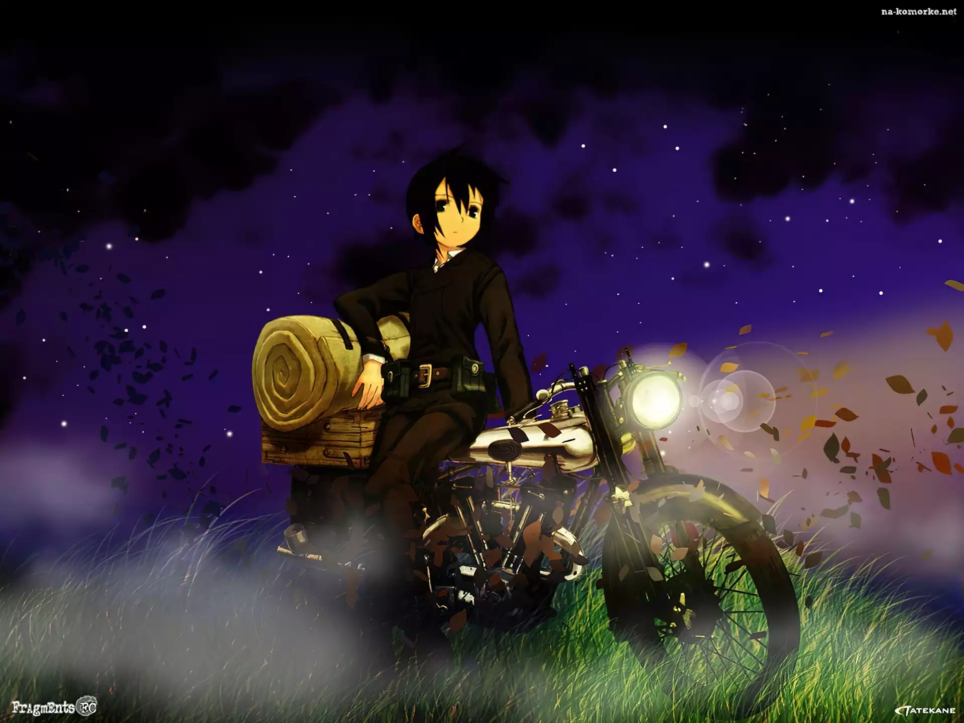 Kino No Tabi, noc, człowiek, motor na Komórkę