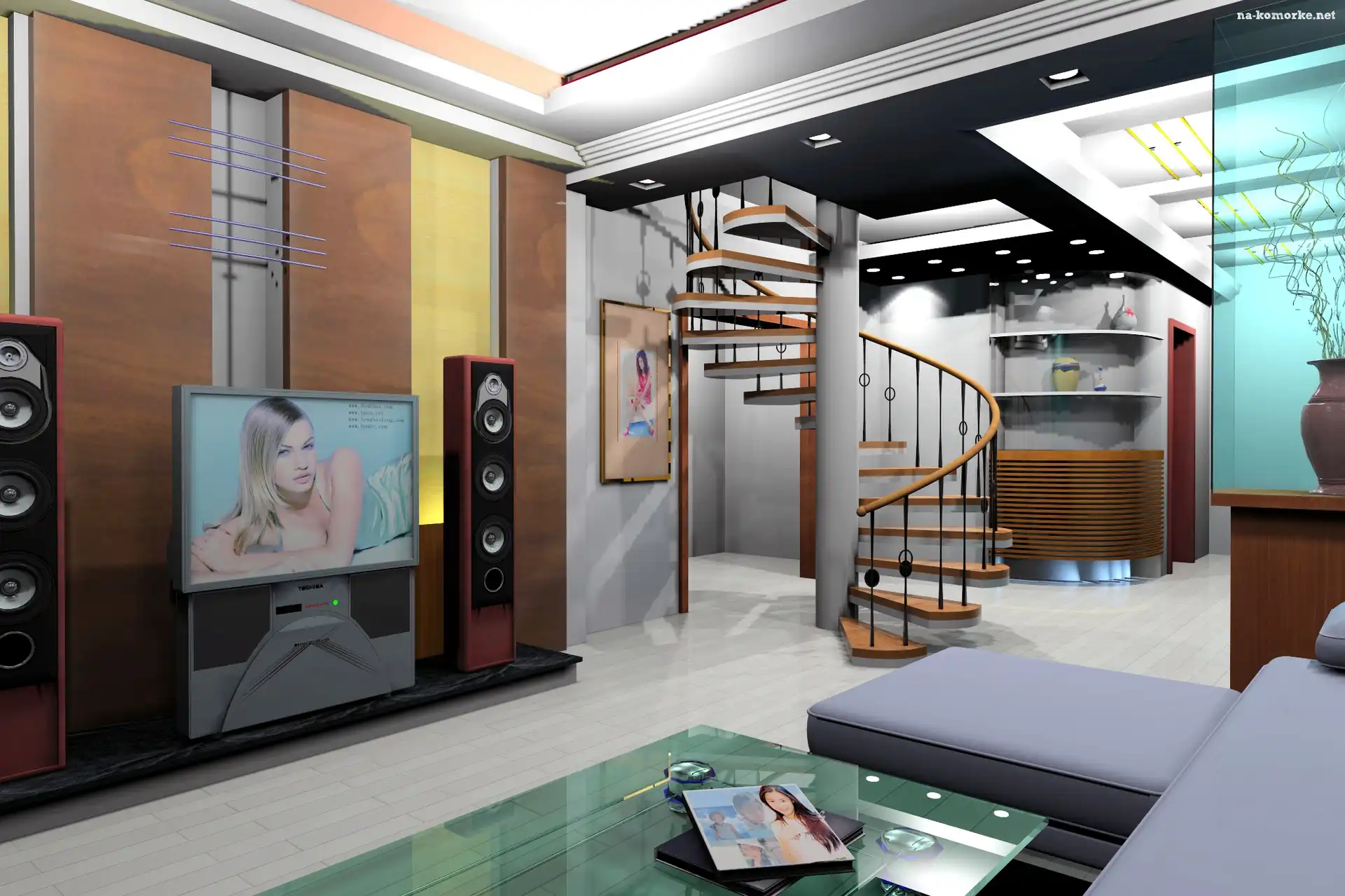 Kino, Kanapa, Pokój, Schody, Stolik, Domowe na Komórkę