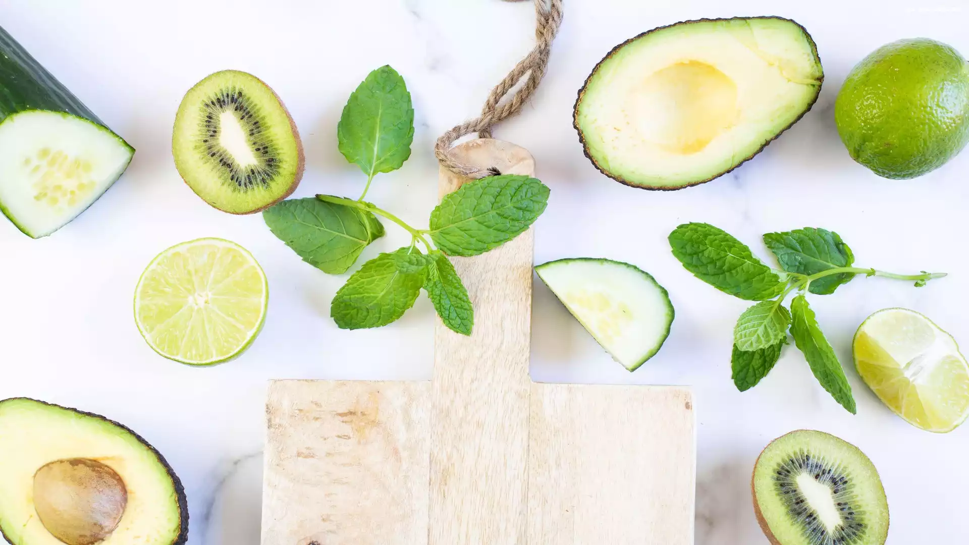 Awokado, Kiwi, Ogórek, Mięta, Deska na Komórkę