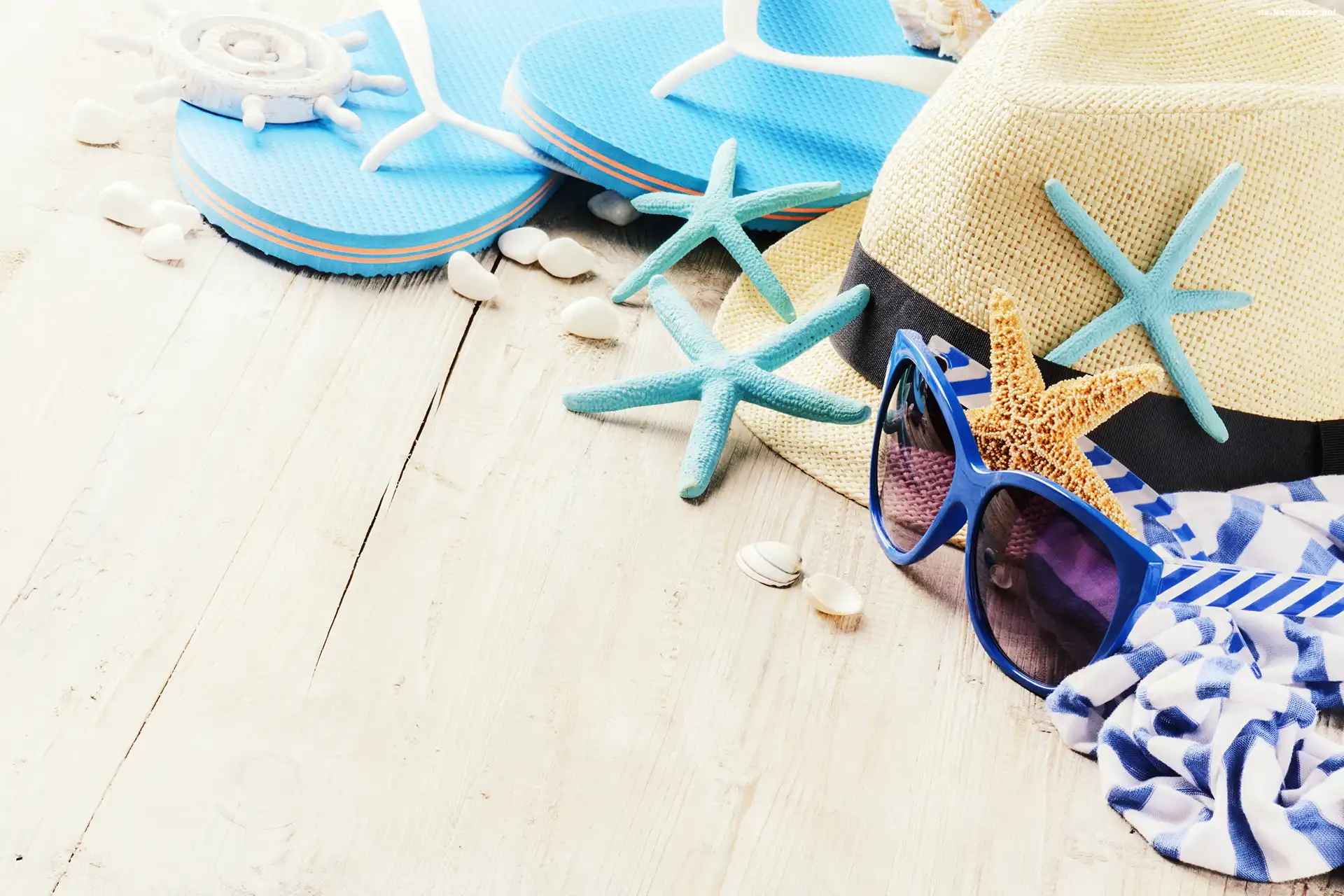 Klapki, Lato, Wakacje, Rozgwiazdy, Kapelusz, Okulary na Komórkę