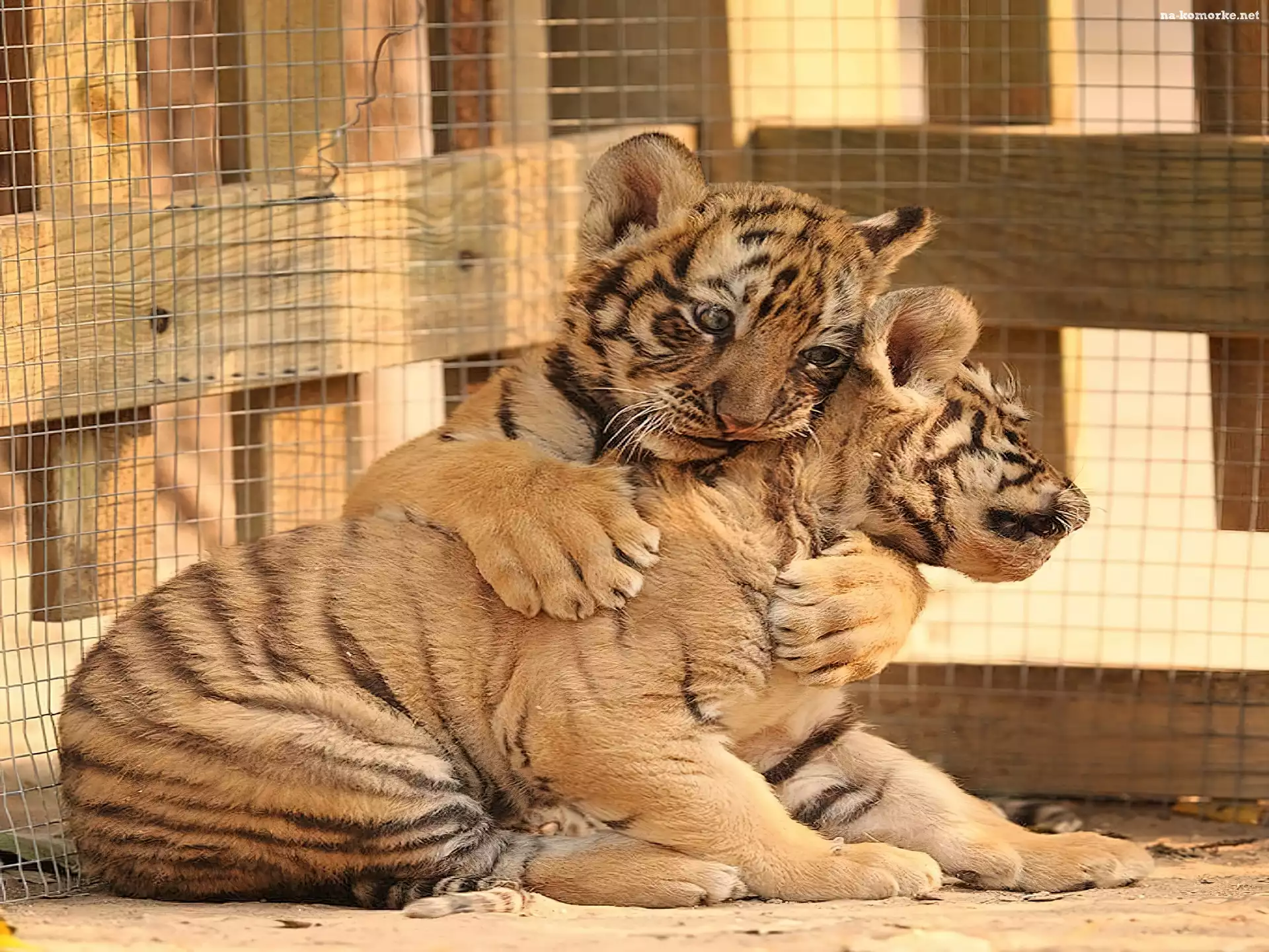 Klatka, Dwa, Małe, Przytulone, Tygryski na Komórkę