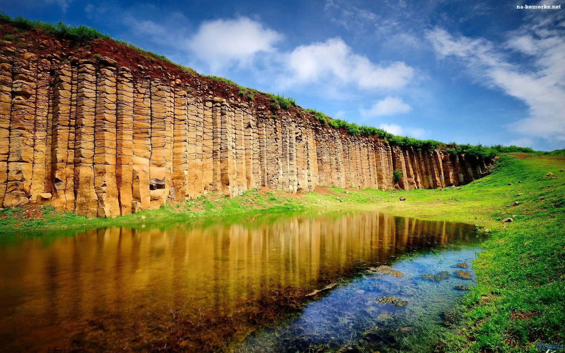 Klif, Niebo, Jezioro, Zieleń na Komórkę