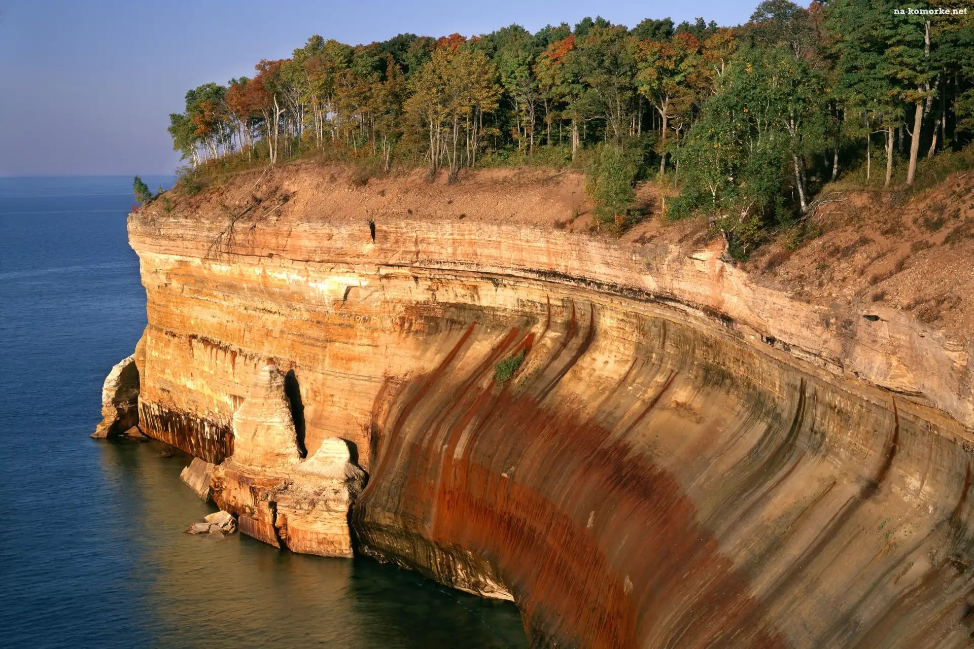 Klifie, Las, Jesienny, Wybrzeże, Na, Morze na Komórkę