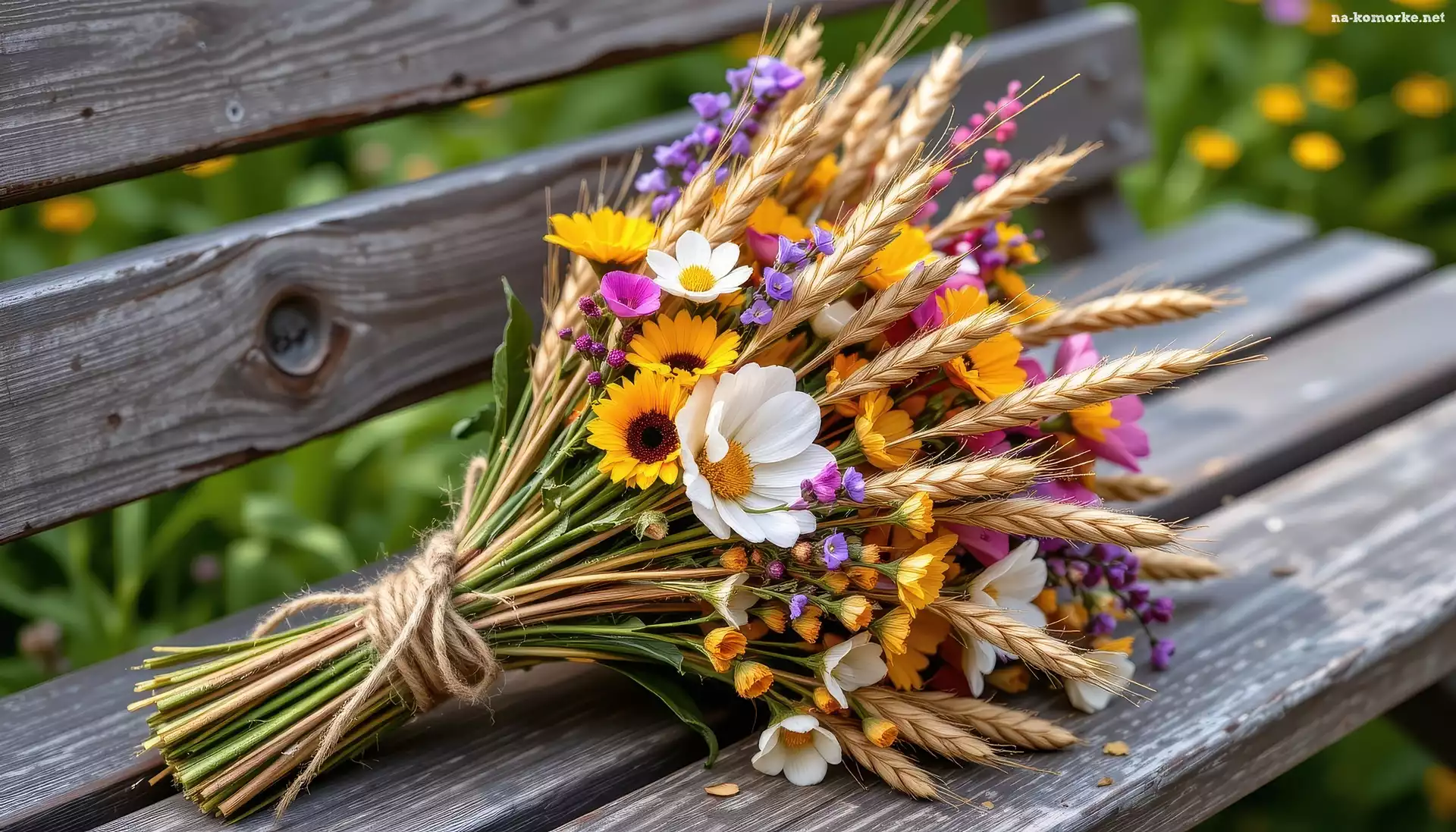Kwiaty, Bukiet, Ławka, Kłosy, Grafika AI na Komórkę