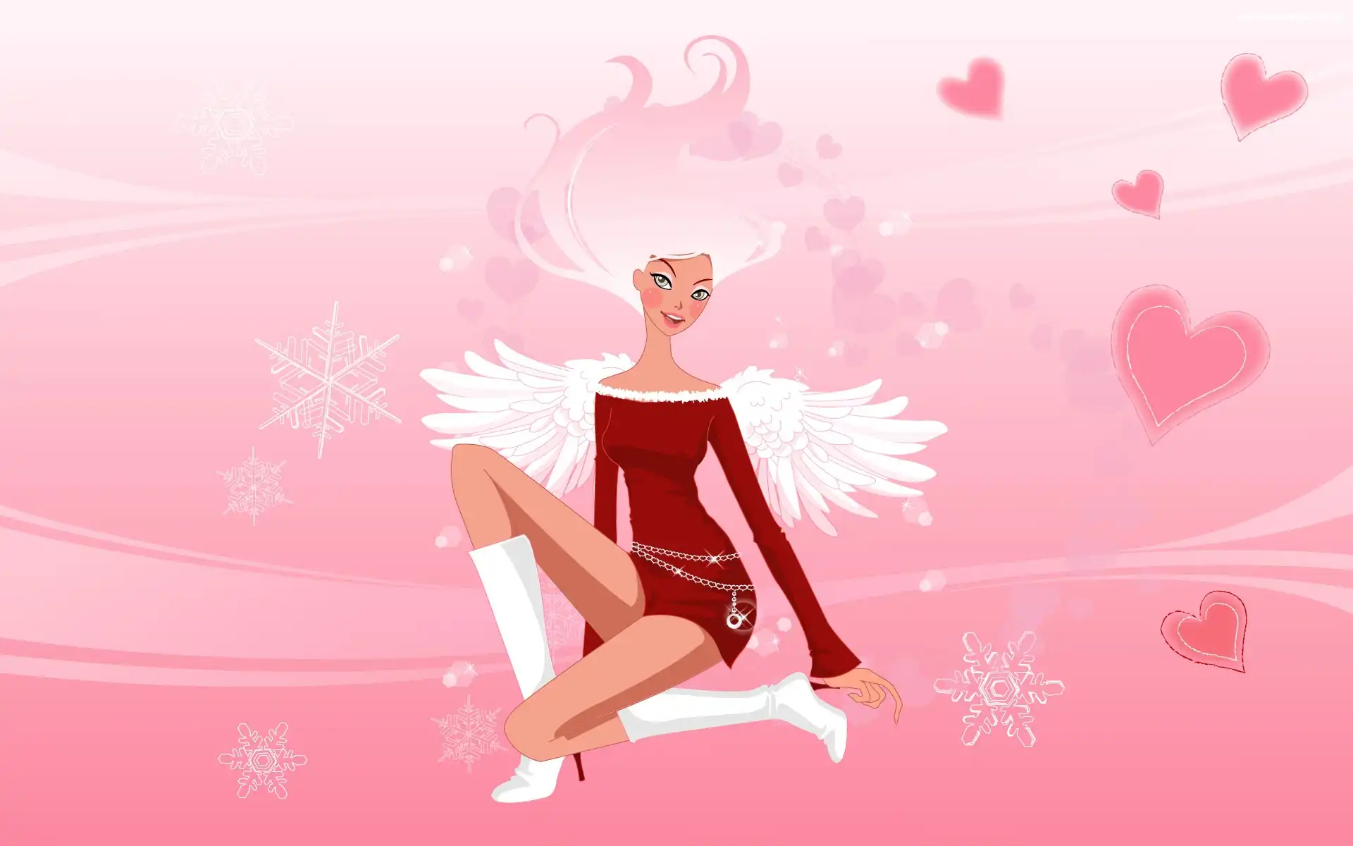 Kobieta, Serca, Anioł, Śnieżynki na Komórkę