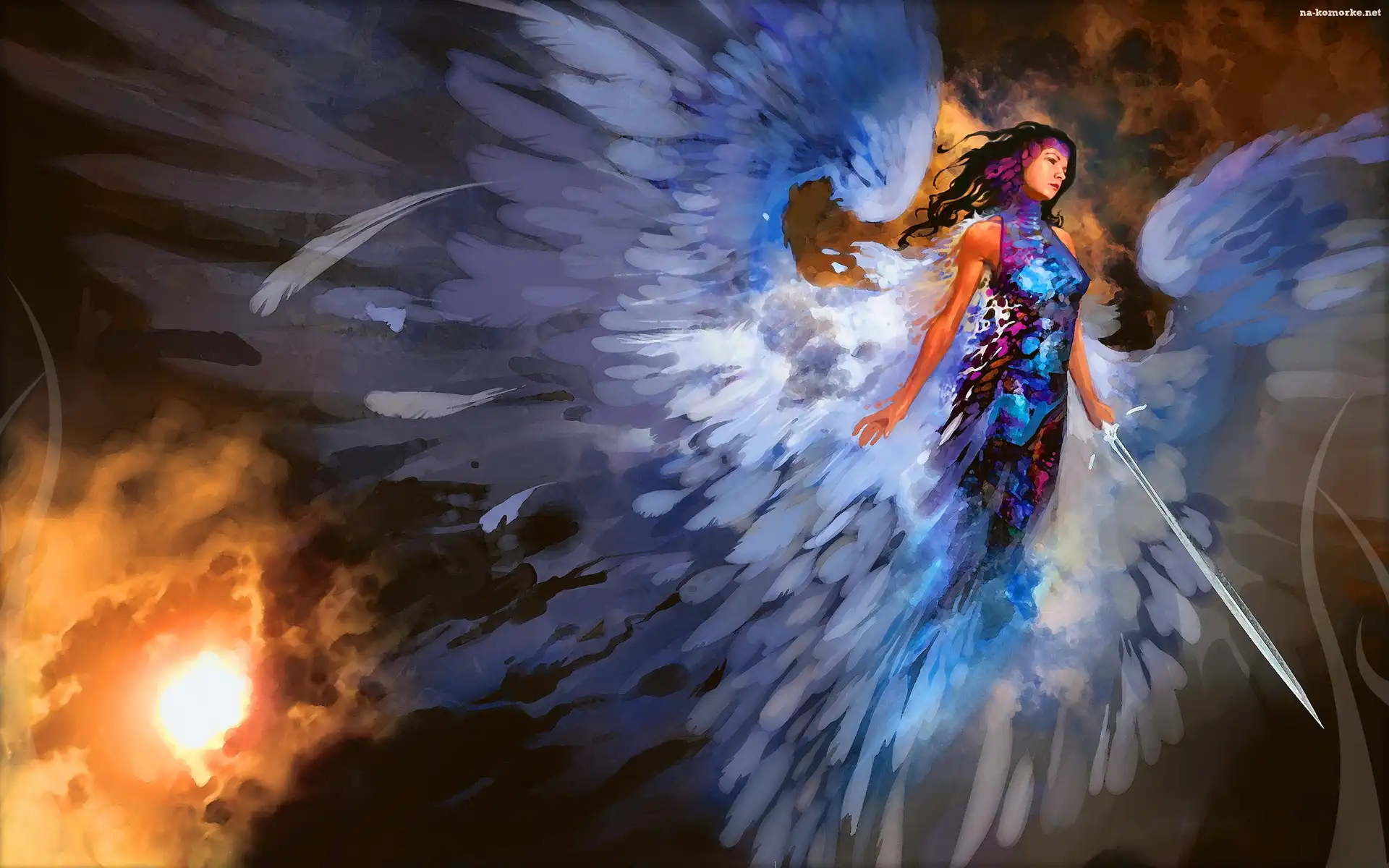 Kobieta, Światło, Anioł, Miecz na Komórkę
