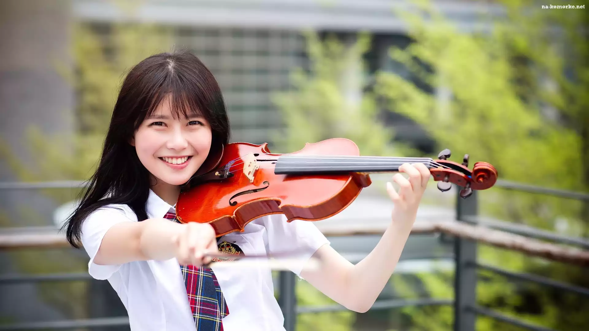 Kobieta, Uśmiech, Azjatka, Skrzypce na Komórkę