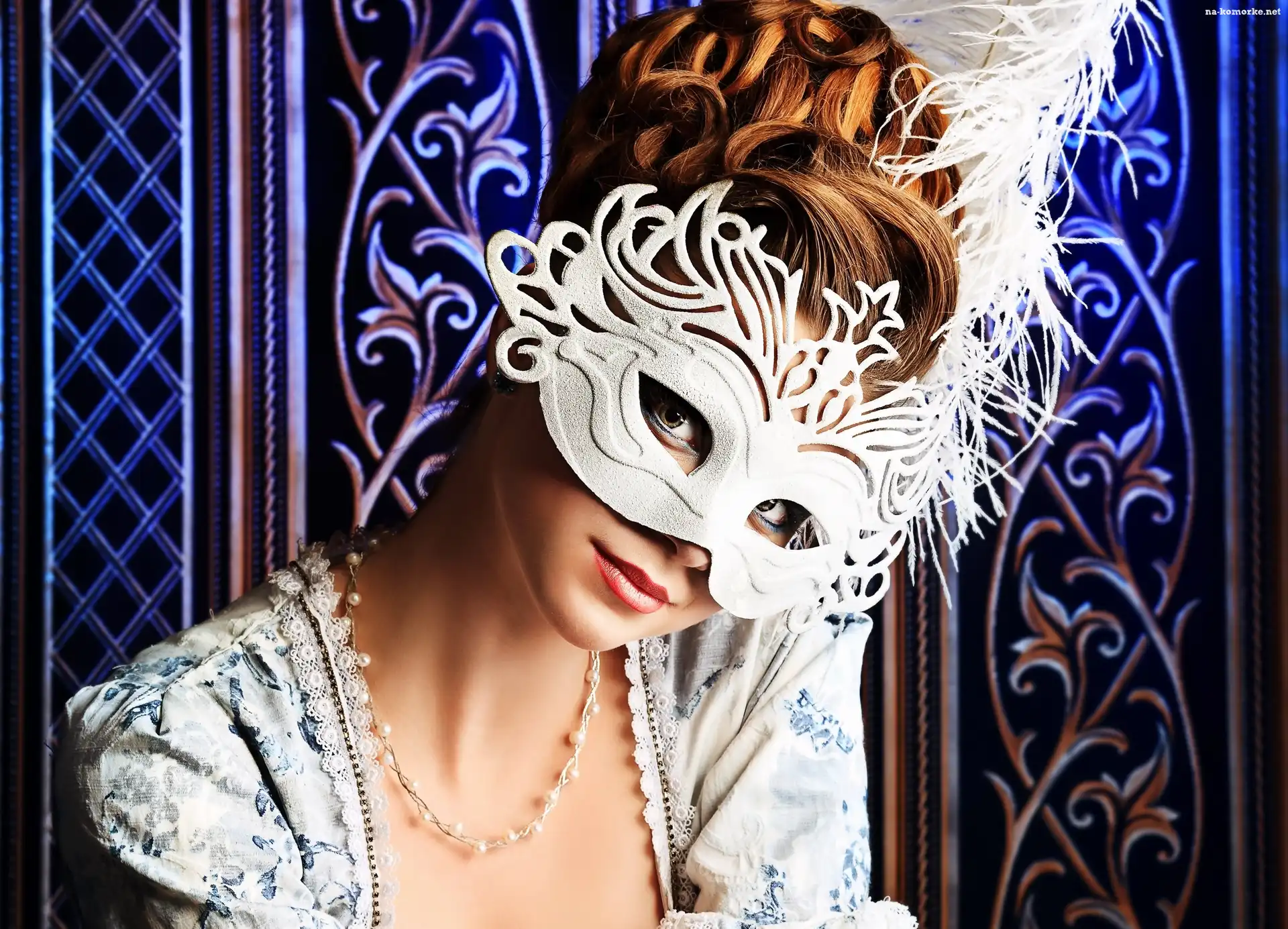 Kobieta, Karnawał, Biała, Maska na Komórkę