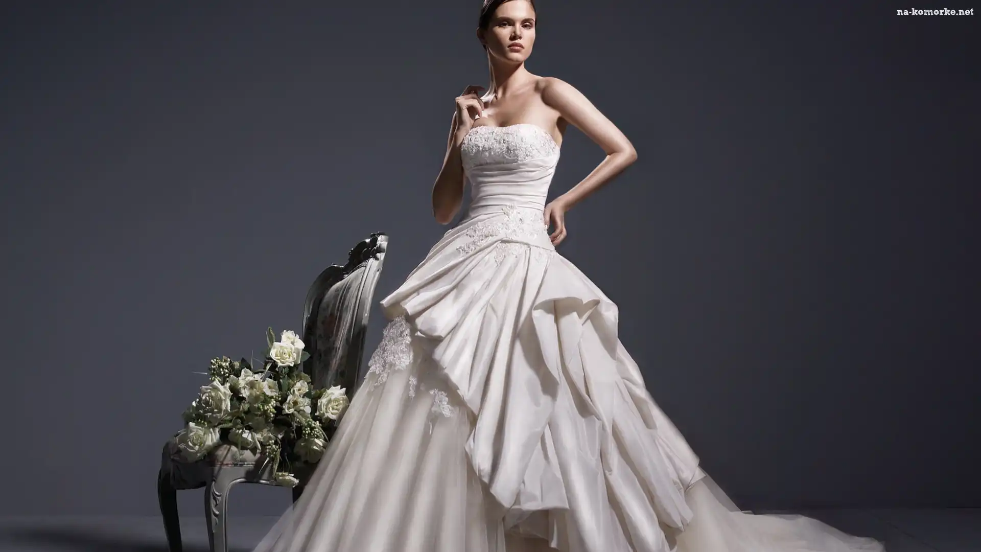 Kobieta, Kwiaty, Biała, Suknia na Komórkę