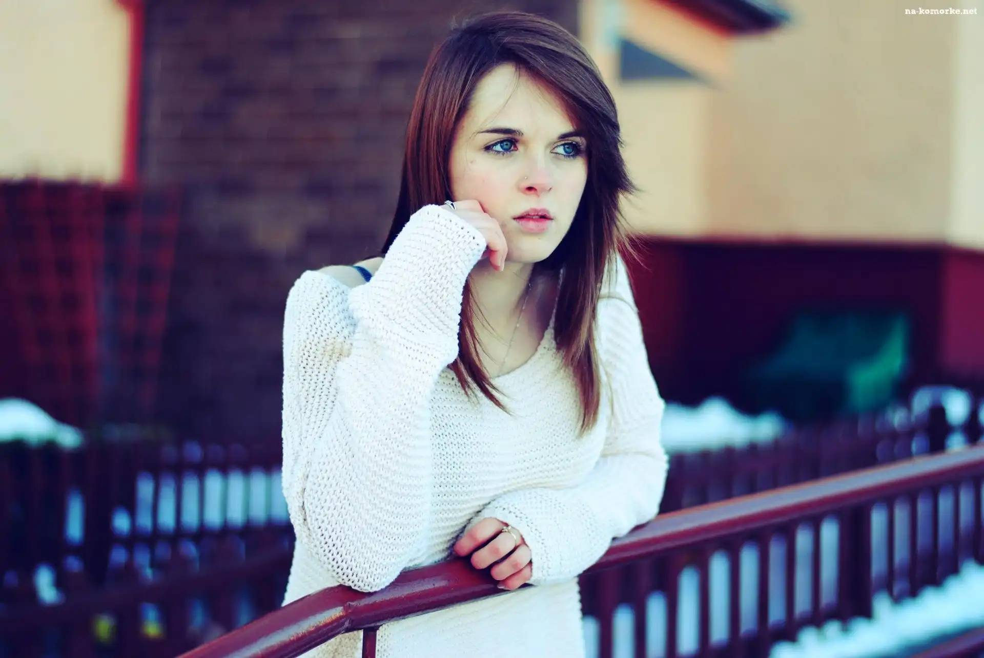 Kobieta, Zabudowanie, Biały, Sweter na Komórkę