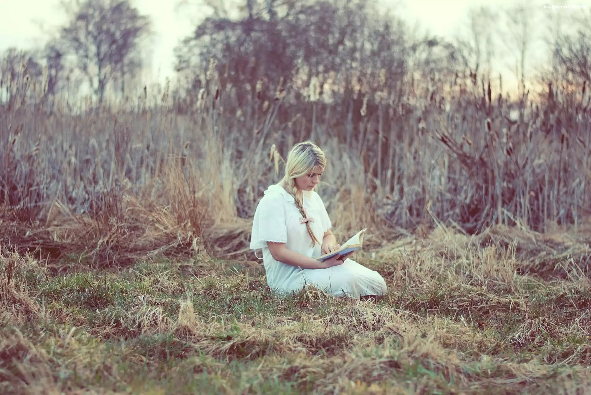 Kobieta, Książka, Blondynka, Pole na Komórkę