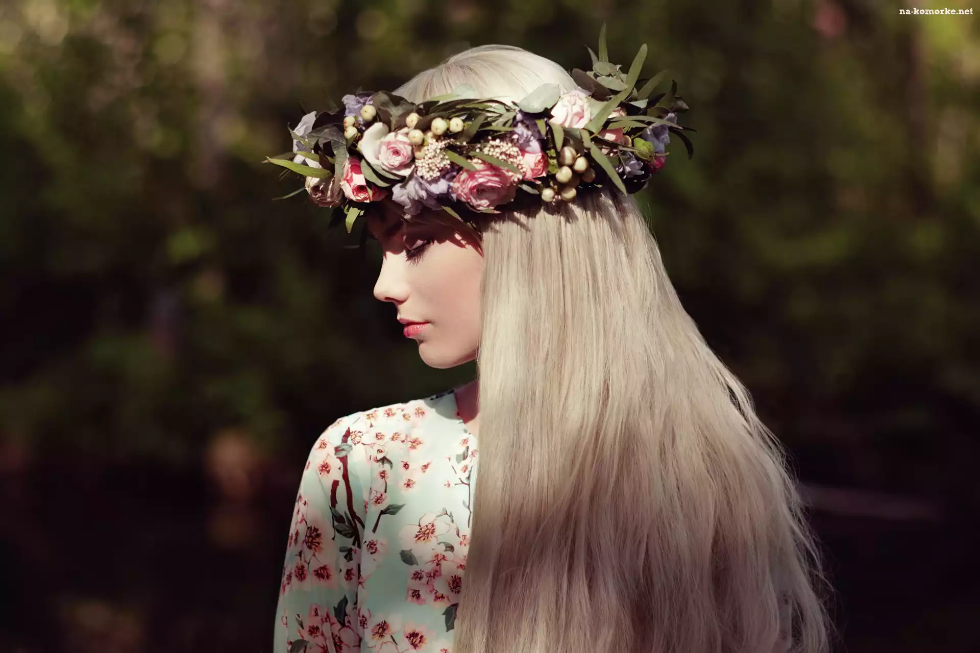 Kobieta, Kwiaty, Blondynka, Wianek na Komórkę
