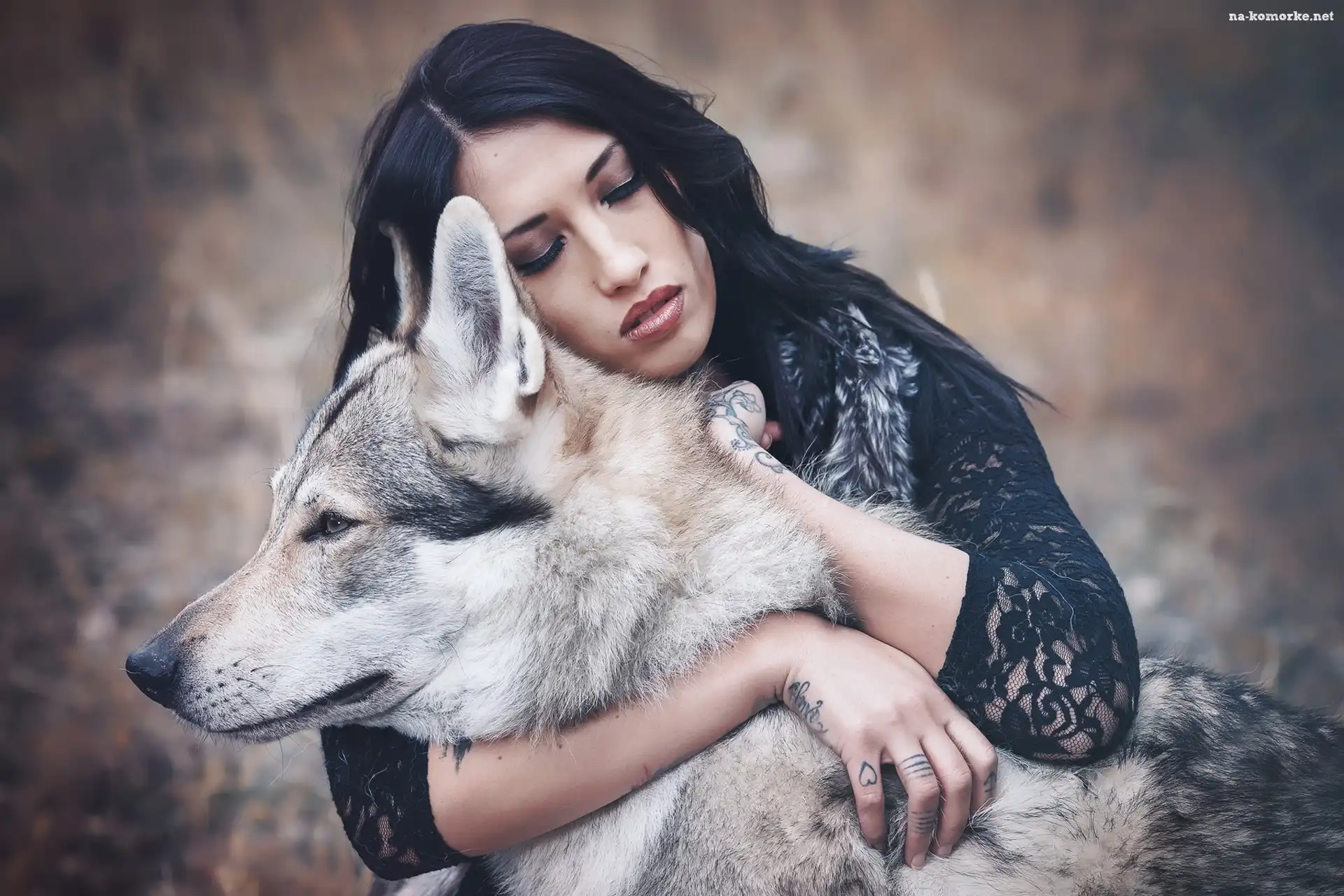 Kobieta, Wilczak czechosłowacki, Brunetka, Pies na Komórkę