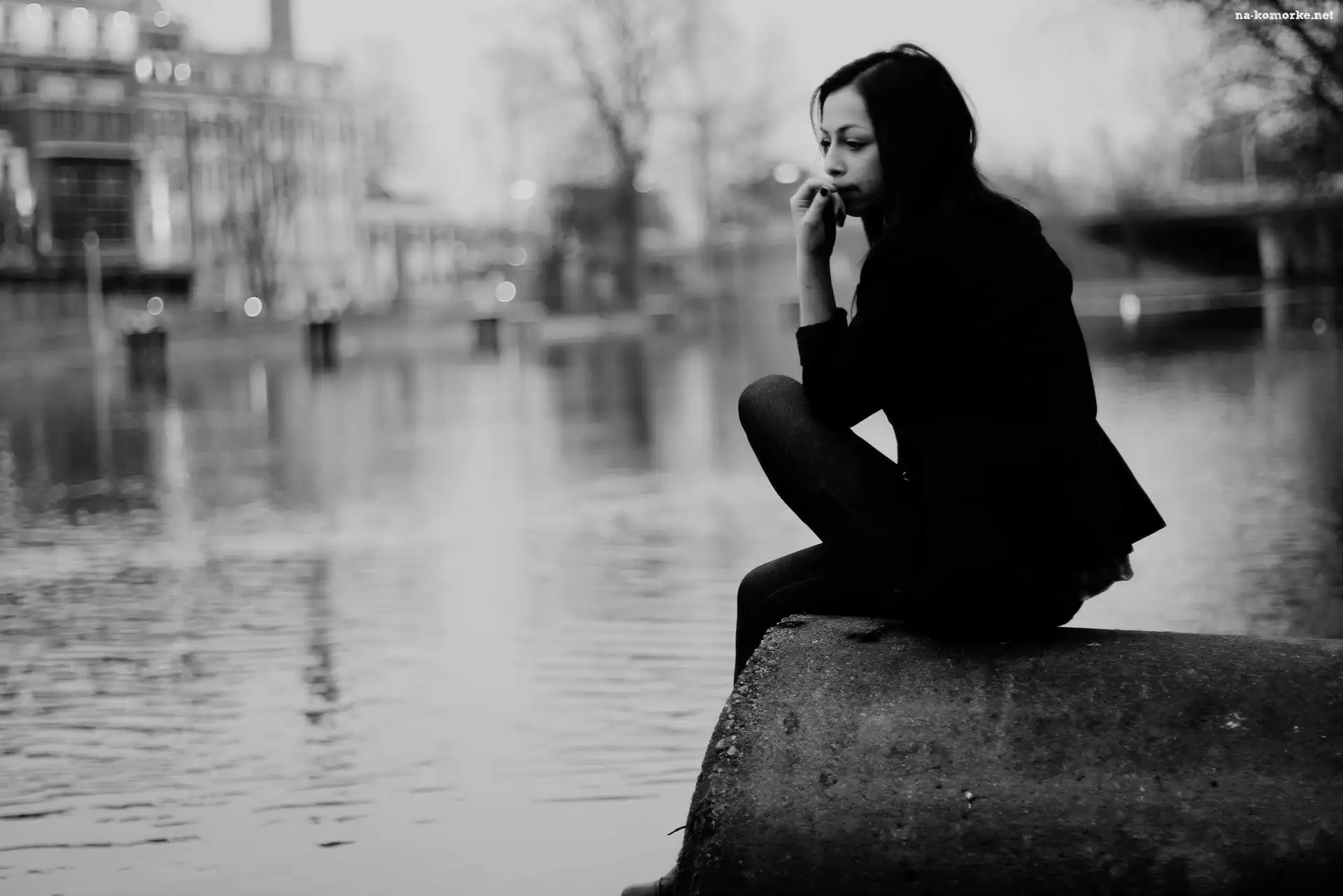 Kobieta, Jezioro, Brunetka, Skała na Komórkę