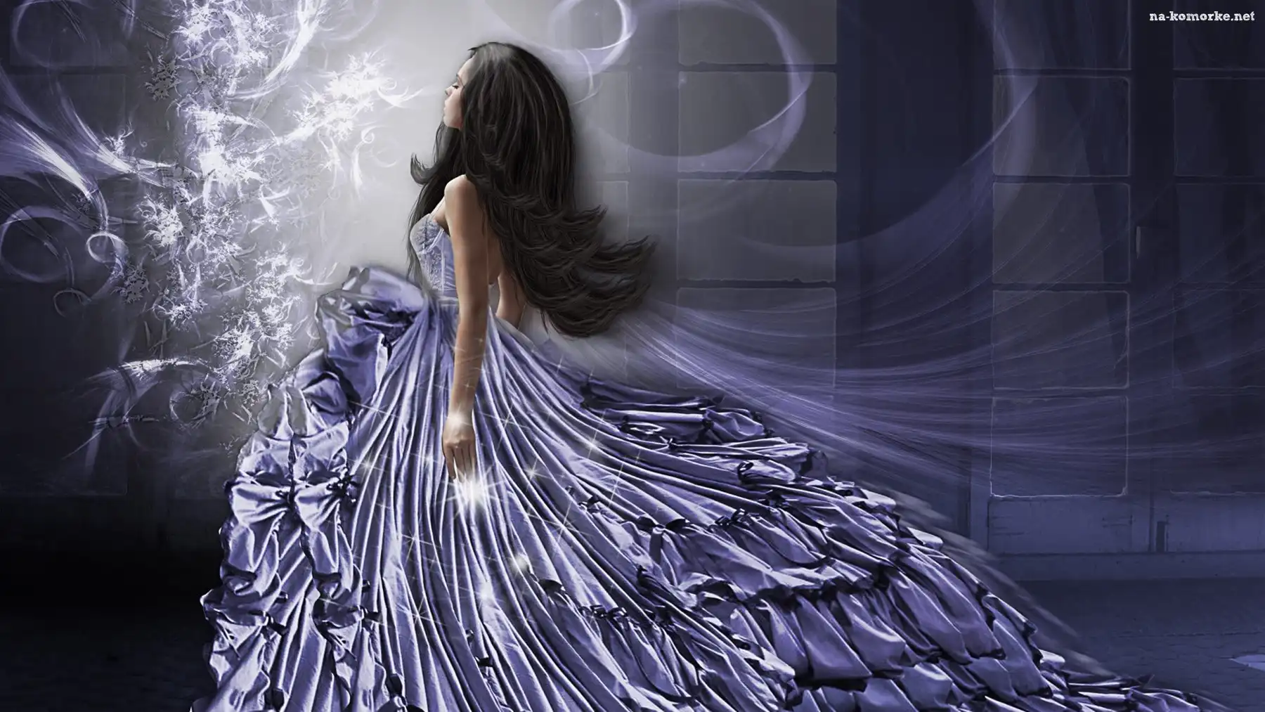Kobieta, Sukienka, Brunetka, Liliowa na Komórkę