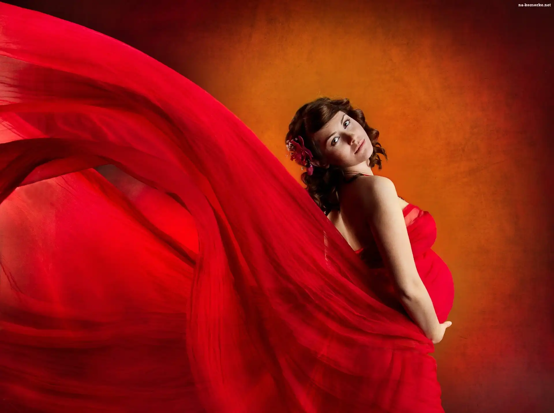 Kobieta, Suknia, Ciąża, Czerwona na Komórkę