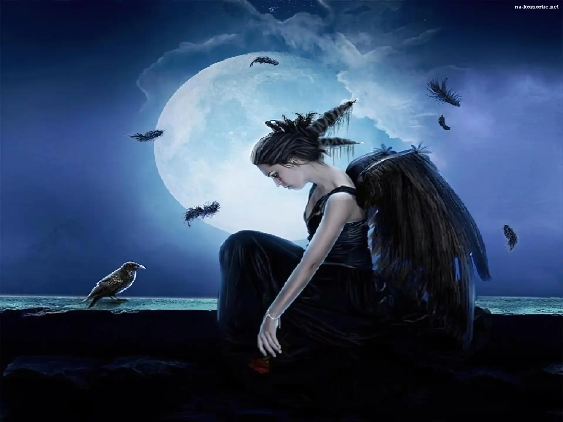 Kobieta, Księżyc, Czarne, Skrzydła na Komórkę