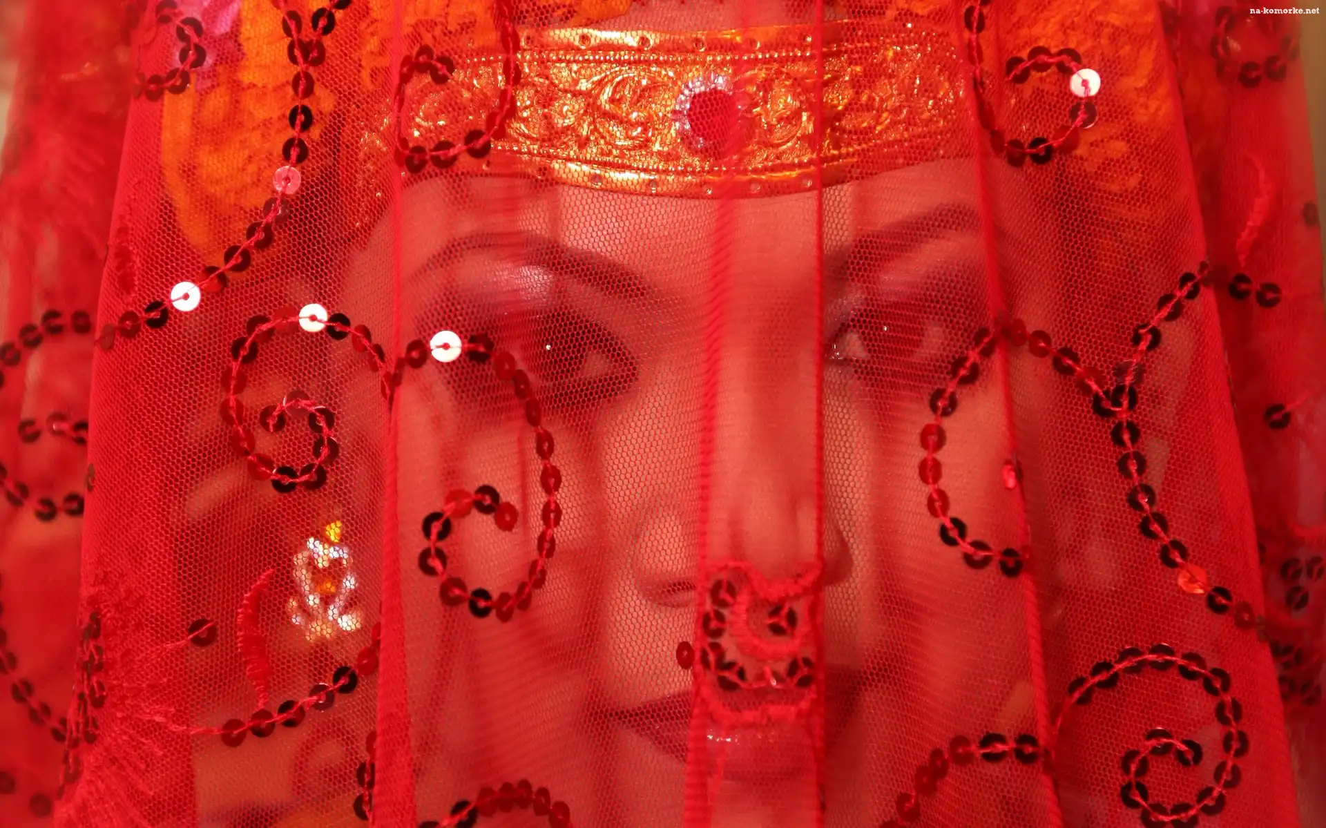 Kobieta, Cekiny, Czerwona, Woalka na Komórkę