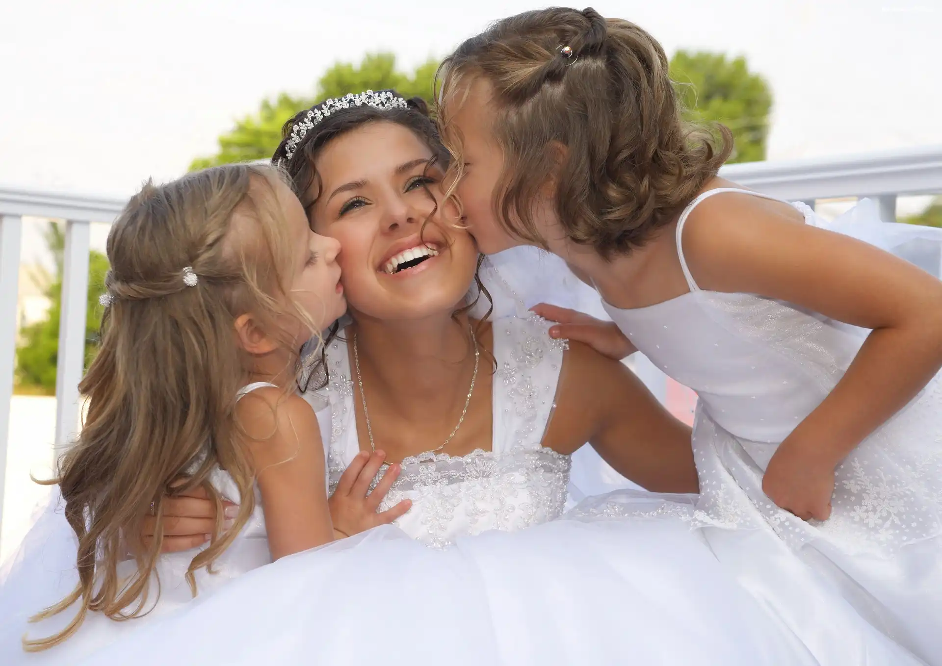 Kobieta, Ślub, Dwie, Dziewczynki na Komórkę