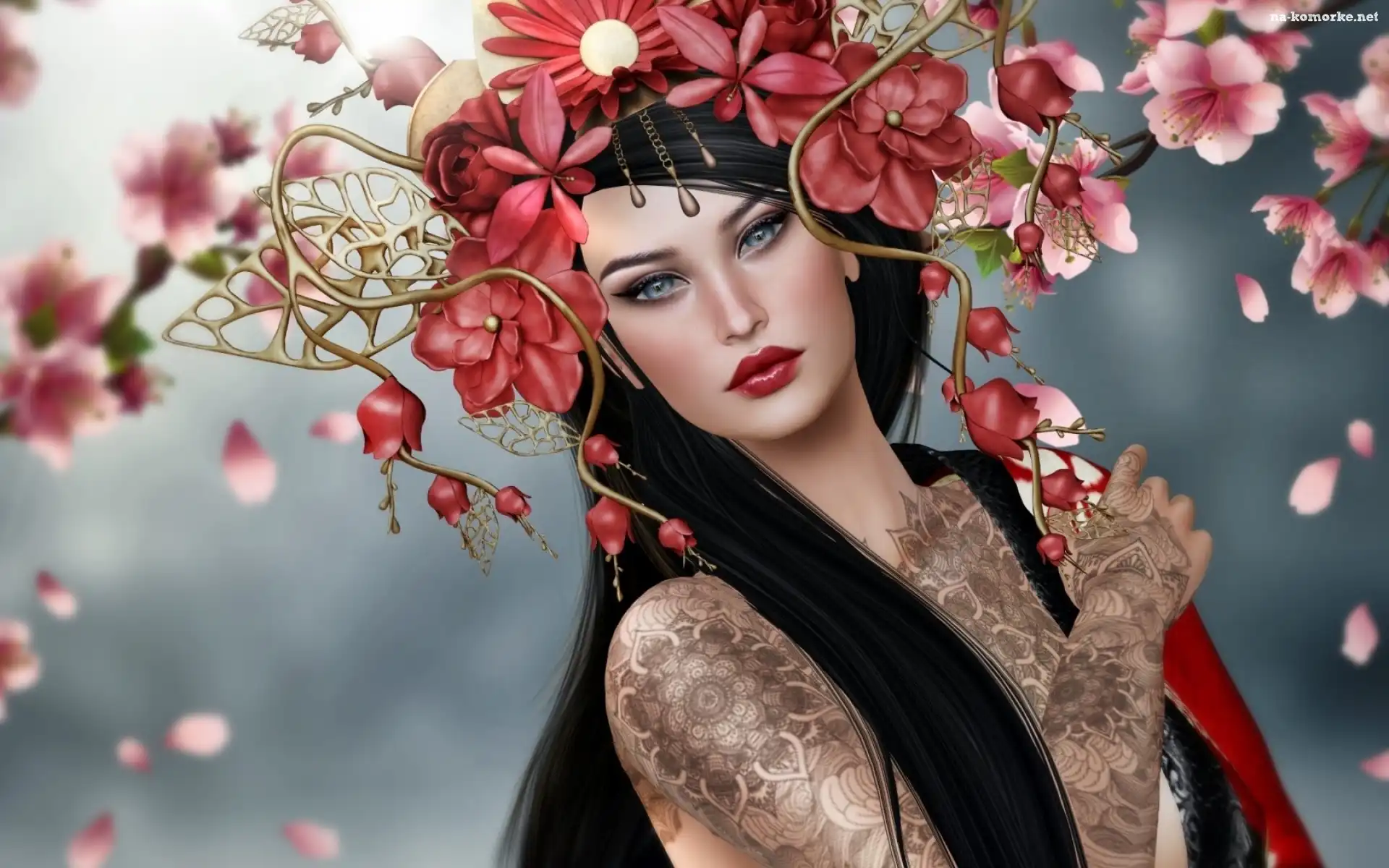 Fantasy, Kobieta, Kwiatki na Komórkę