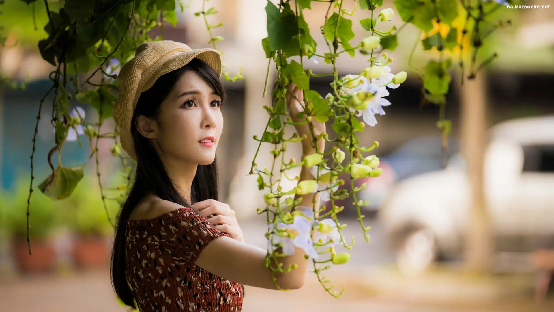Kobieta, Azjatka, Gałęzie, Czapka na Komórkę
