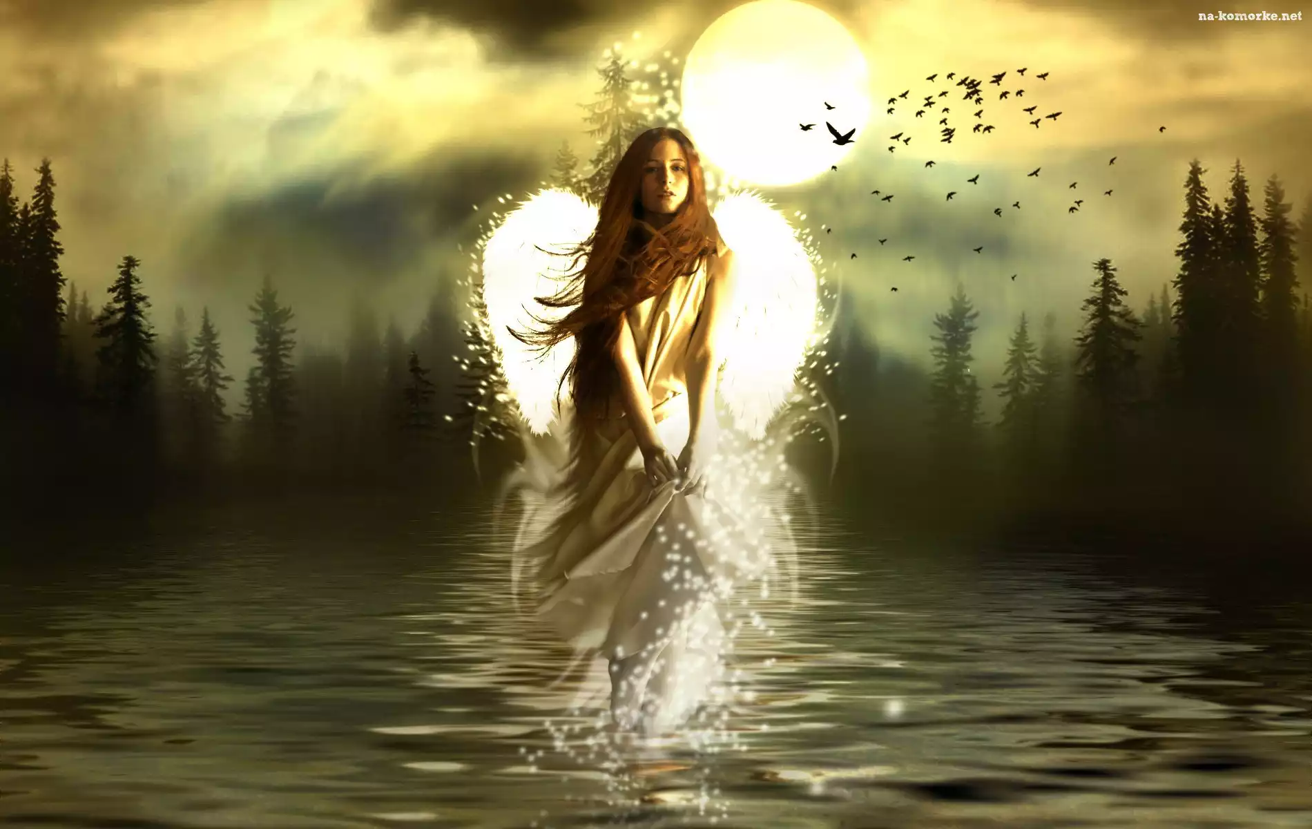 Kobieta, Fantasy, Jezioro, Las na Komórkę
