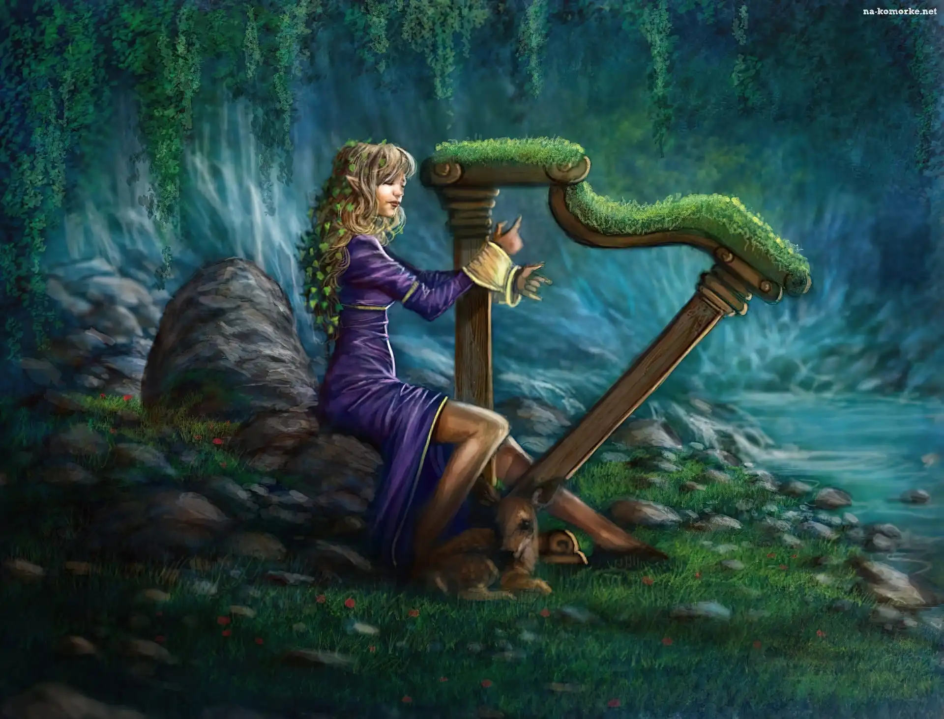 Kobieta, Sarenka, Kamień, Harfa na Komórkę
